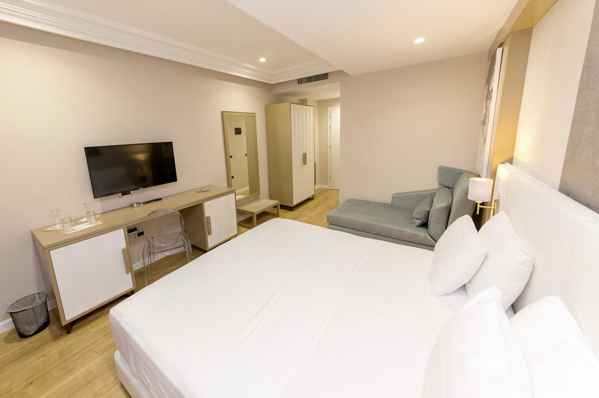 Kahden hengen huone jossa on parveke. Parivuode. Lisävuodemahdollisuus vuodesohvalla. Maksuton wifi, ilmastointi ja tallelokero. Jääkaappi. Tv paikallisilla kanavilla. Hiustenkuivain. Kylpyhuoneessa suihku ja wc. Siivous 7 krt/viikko.