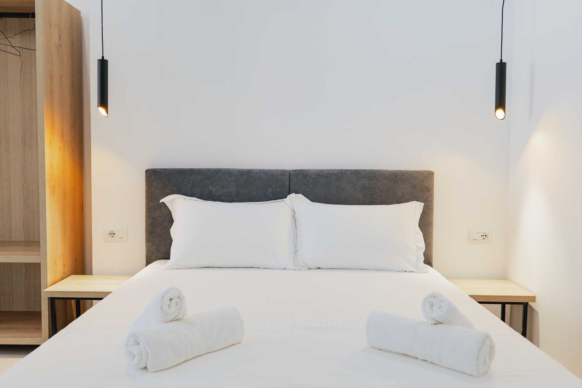 Perhehuone, jossa kolme tavallista vuodetta ja parveke. Maksuton wifi, ilmastointi ja tallelokero. Jääkaappi. Tv kansainvälisillä kanavilla. Hiustenkuivain. Kylpyhuoneessa kylpyamme tai suihku ja wc. Siivous 7 krt/viikko.