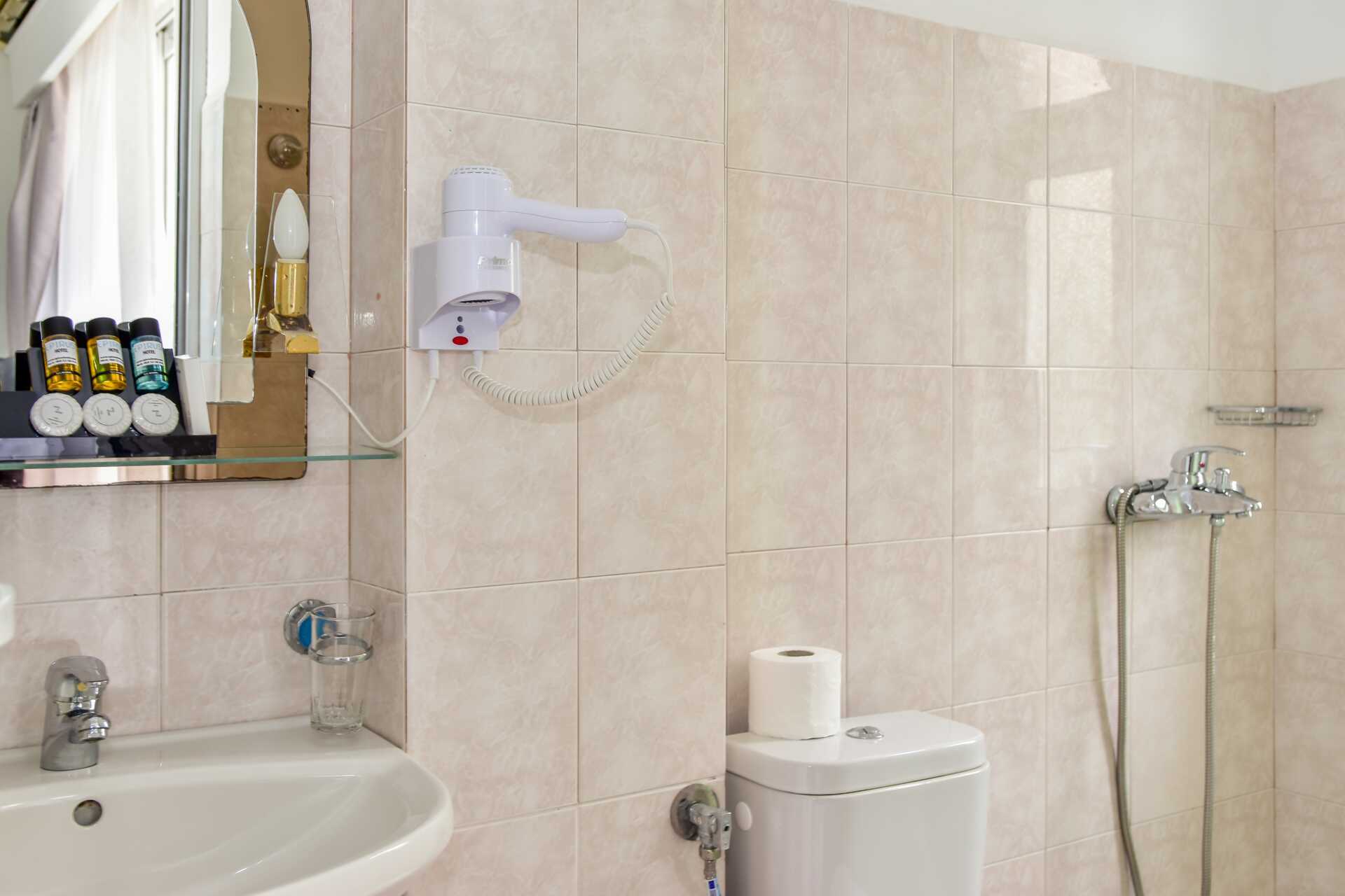 Kahden hengen huoneissa on parveke, osassa merinäköala tai rajoitettu merinäköala. Parivuode tai kaksi erillistä sänkyä. Osassa lisävuodemahdollisuus kolmannelle henkilölle. Maksuton wifi, ilmastointi ja tallelokero. Jääkaappi. Tv kansainvälisillä kanavilla. Hiustenkuivain. Kylpyhuoneessa suihku ja wc. Siivous 7 krt/viikko.
