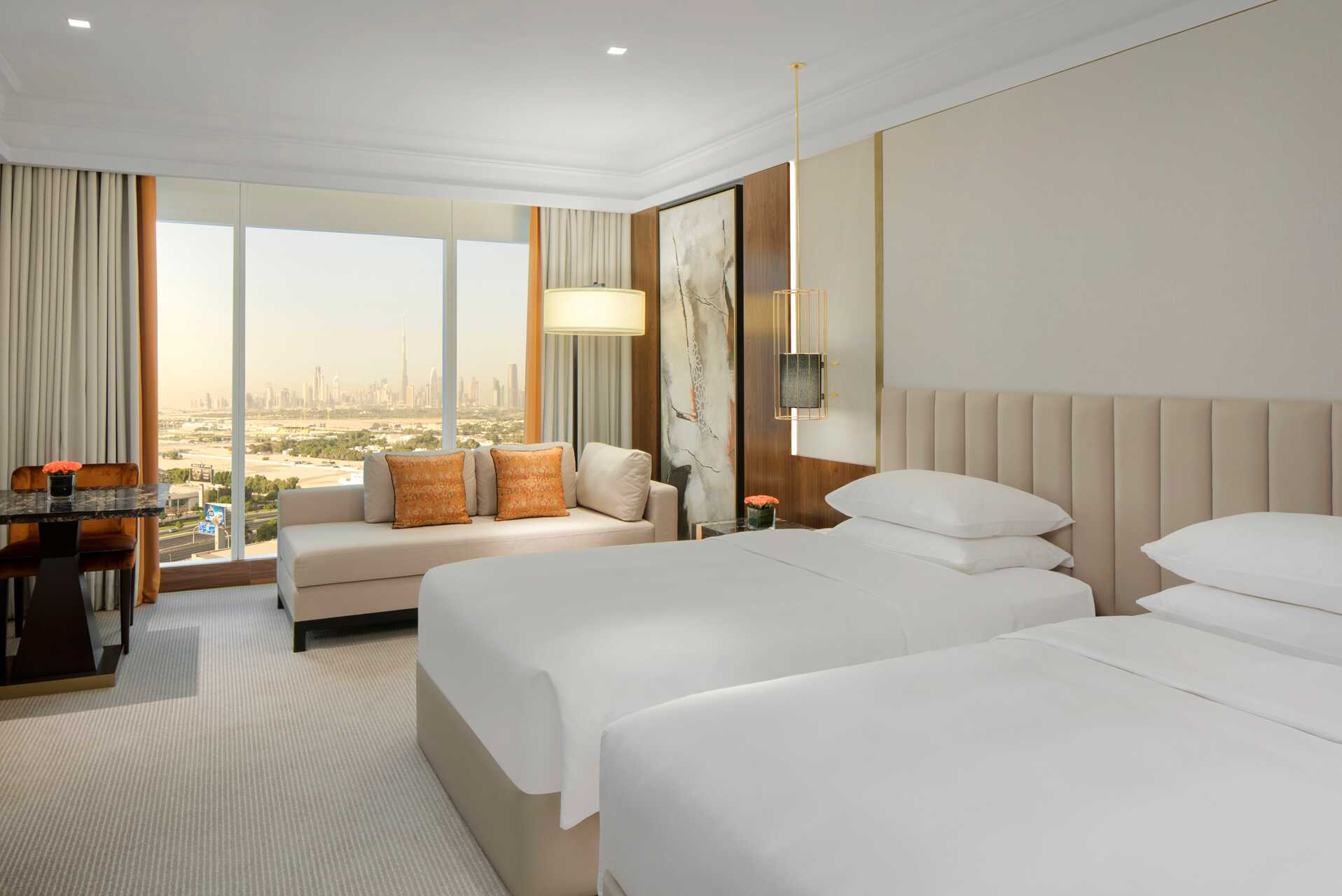 Deluxe-huoneita, osassa näkymät Dubain ylitse. Huoneissa ei ole ulkotilaa. Parivuode tai kaksi yhden hengen vuodetta. Lisävuodemahdollisuus vuodesohvasta. Maksuton wifi, ilmastointi ja tallelokero. Kokolattiamatto. Minibaari. Kahvinkeitin. Tv kansainvälisillä kanavilla. Silitysrauta ja -lauta. Hiustenkuivain. Kylpytakit ja tossut. Amme tai suihku ja wc. Siivous 7 krt/viikko. Alle 2-vuotiaat lapset lasketaan lisävuoteella majoittuviksi henkilöiksi.