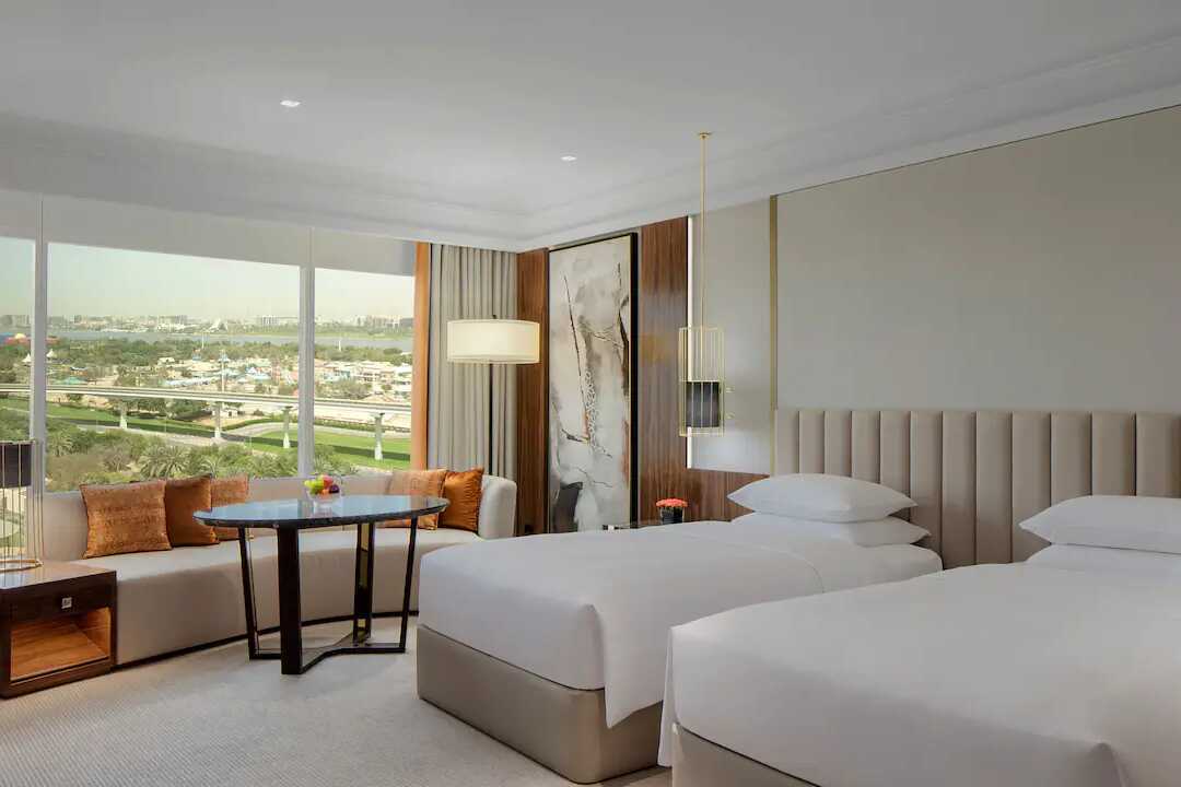 Deluxe-huone Plus, johon sisältyy rajoittamaton pääsy hotelli-vesipuistoon. Joistakin huoneista on näkymät Dubain horisonttiin. Huoneissa ei ole ulkotilaa. Parivuode tai kaksi yhden hengen sänkyä. Lisävuodemahdollisuus vuodesohvasta. Maksuton wifi, ilmastointi ja tallelokero. Kokolattiamatto. Minibaari. Kahvinkeitin. Tv kansainvälisillä kanavilla. Silitysrauta ja -lauta. Hiustenkuivain. Kylpytakit ja tossut. Kylpyamme tai suihku ja wc. Siivous 7 krt/viikko. Alle 2-vuotiaat lapset lasketaan lisävuoteella majoittuviksi henkilöiksi.