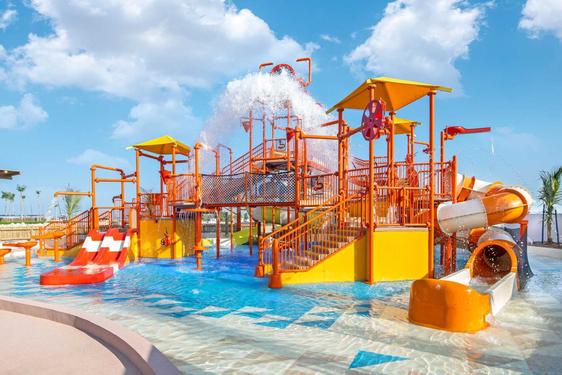 Uima-allasalue splash-parkilla ja vesiliukumäillä