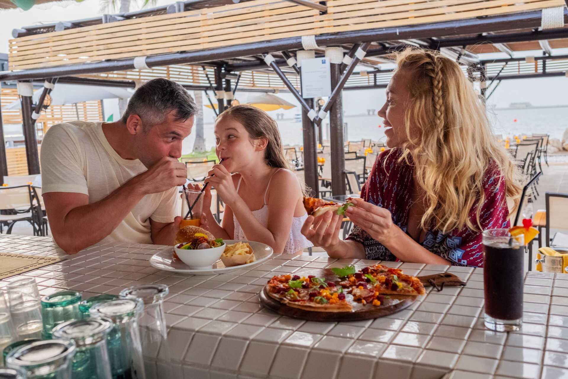 JA Beachillä on jokaiselle makuhermoille jotakin! Ibn Majed -buffetravintolassa tarjoillaan aamupalaa ja illallista, ja Urheilukahvilassa, josta on kaunis näköala venesatamaan, lounasta. á la carte -ravintoloista löydät Taperia espanjalaisilla erikoisuuksilla, Captain's hieman yksinkertaisemmilla annoksilla, kuten pizzalla, intialainen ravintola Kinara maustemarkkinoilla, jossa voit oppia lisää mausteiden hyödyllisistä ominaisuuksista, italialainen ravintola Sette kiinteällä ruualla. viinilista ja 360 asteen näkymä lomakeskukseen ja aasialaiseen White Orchid -ravintolaan, jossa on erikoisuuksia eri puolilta aluetta. Italialaisen à la carte -ravintolan Sette ikäraja on 12 vuotta. 21.00. Pöytävaraukset vaaditaan useimmissa ravintoloissa. Lomakeskuksessa on myös useita baareja ja loungeja.