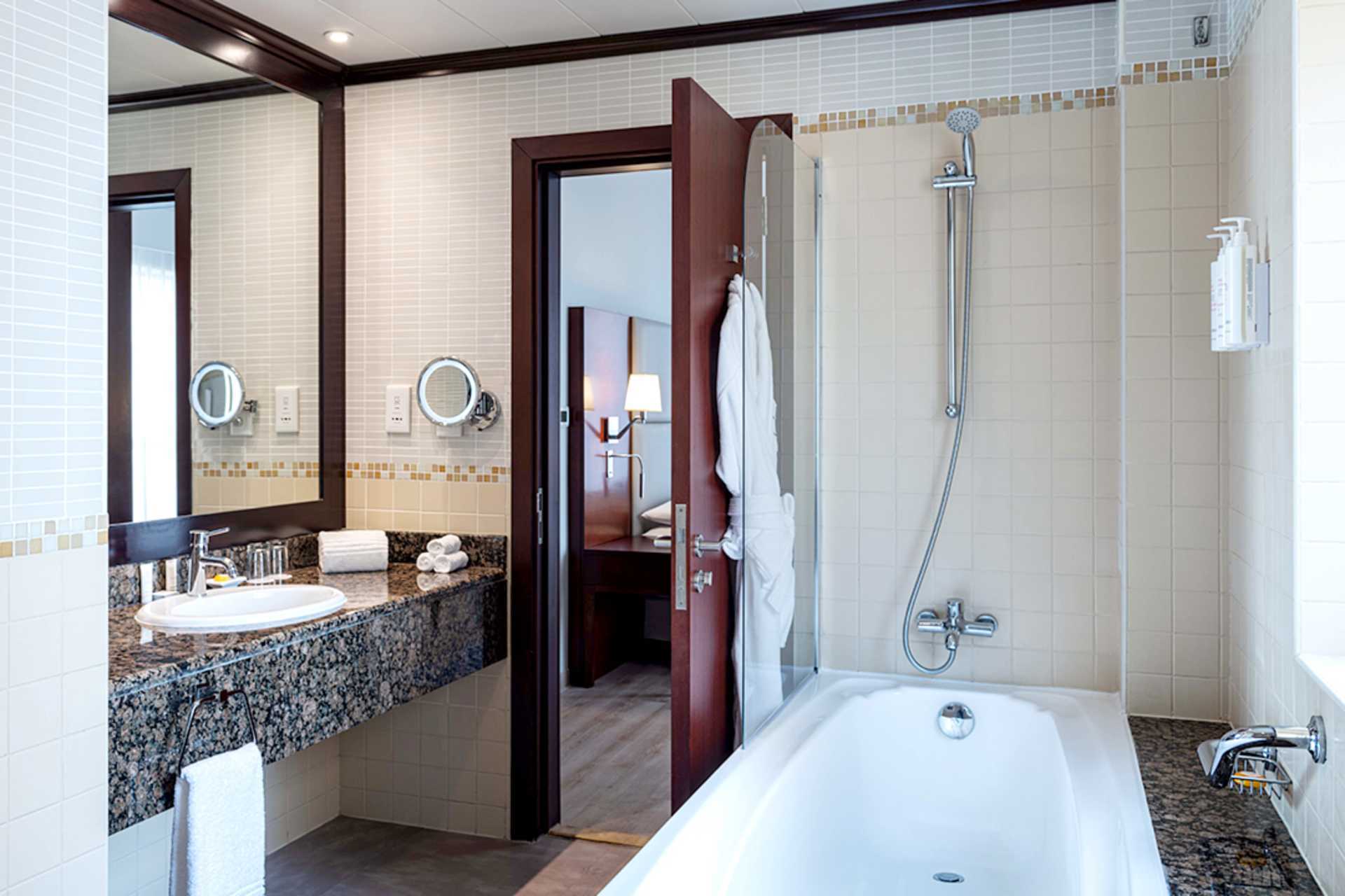 Kahden hengen huone parvekkeella. Yksi parivuode tai kaksi erillistä vuodetta. Lisävuodemahdollisuus kokoontaitettavassa vuoteessa. Maksuton wifi, ilmastointi ja tallelokero. Istuinryhmä. Jääkaappi. Vedenkeitin, kahvia ja teetä. Tv kansainvälisillä kanavilla. Silitysrauta ja -lauta. Kylpytakit ja tossut. Hiustenkuivain. Kylpyhuoneessa kylpyamme tai suihku ja wc. Siivous 7 krt/viikko.