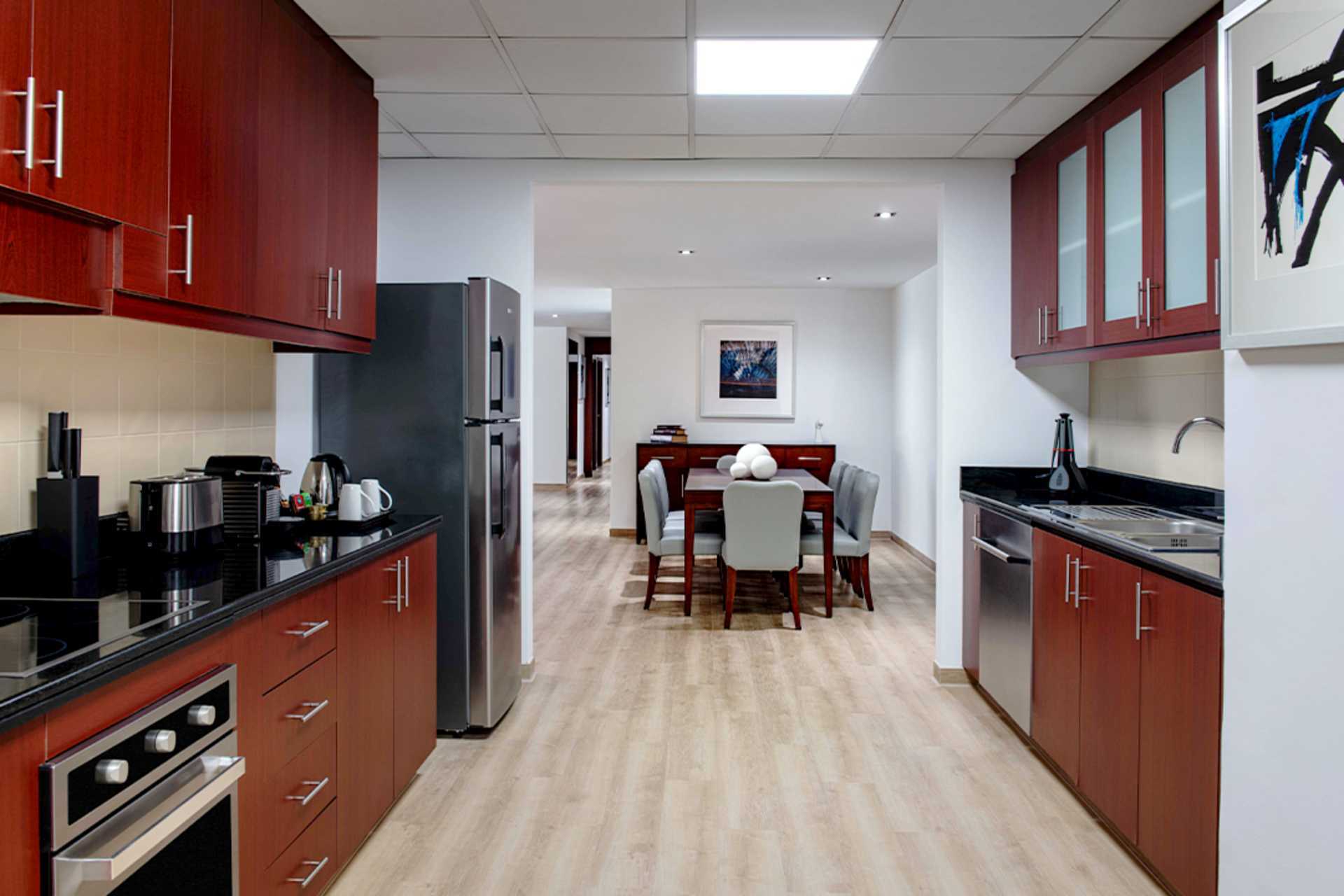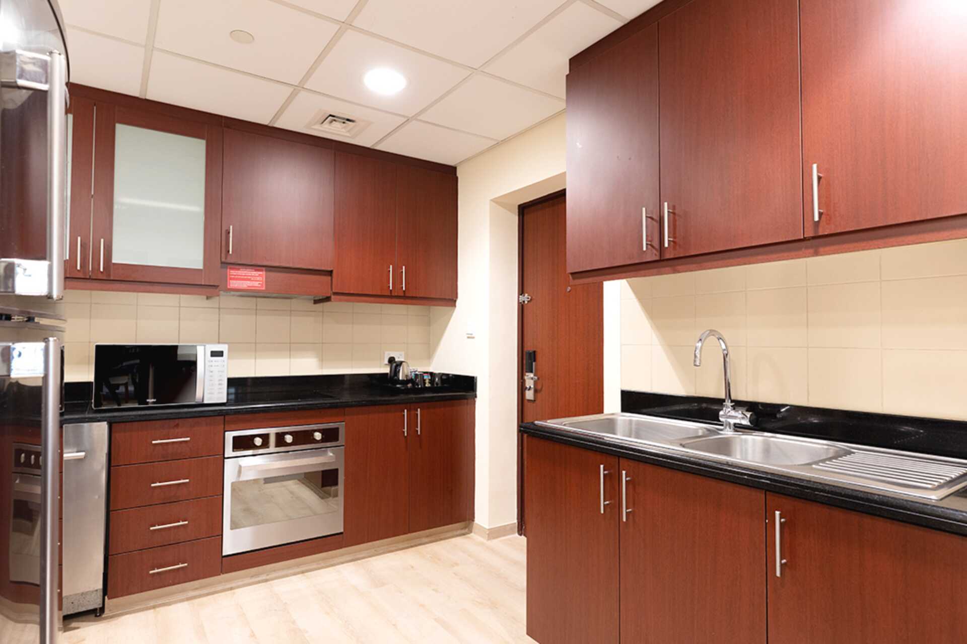Kolmio parvekkeella. Kaksi makuuhuonetta ja olohuone, josta avoin pohjaratkaisu keittiöön. Olohuoneessa on sohvat ja ruokailutila. Yhdessä makuuhuoneessa on parivuode ja toisessa makuuhuoneessa kaksi erillistä vuodetta. Mahdollisuus lisävuoteeseen kokoontaitettavassa sängyssä makuuhuoneessa, jossa on erilliset vuoteet. Neljäs henkilö nukkuu olemassa olevissa vuoteissa. Minikeittiössä keittolevyt, jääkaappi, astianpesukone, mikro, vedenkeitin, kahvinkeitin ja yksinkertainen keittiövarustus. Maksuton wifi, ilmastointi ja tallelokero. Jokaisessa huoneessa on televisio kansainvälisillä kanavilla. Pesukone. Silitysrauta ja -lauta. Kylpytakit ja tossut. Hiustenkuivain. Amme ja wc. Siivous 7 krt/viikko.