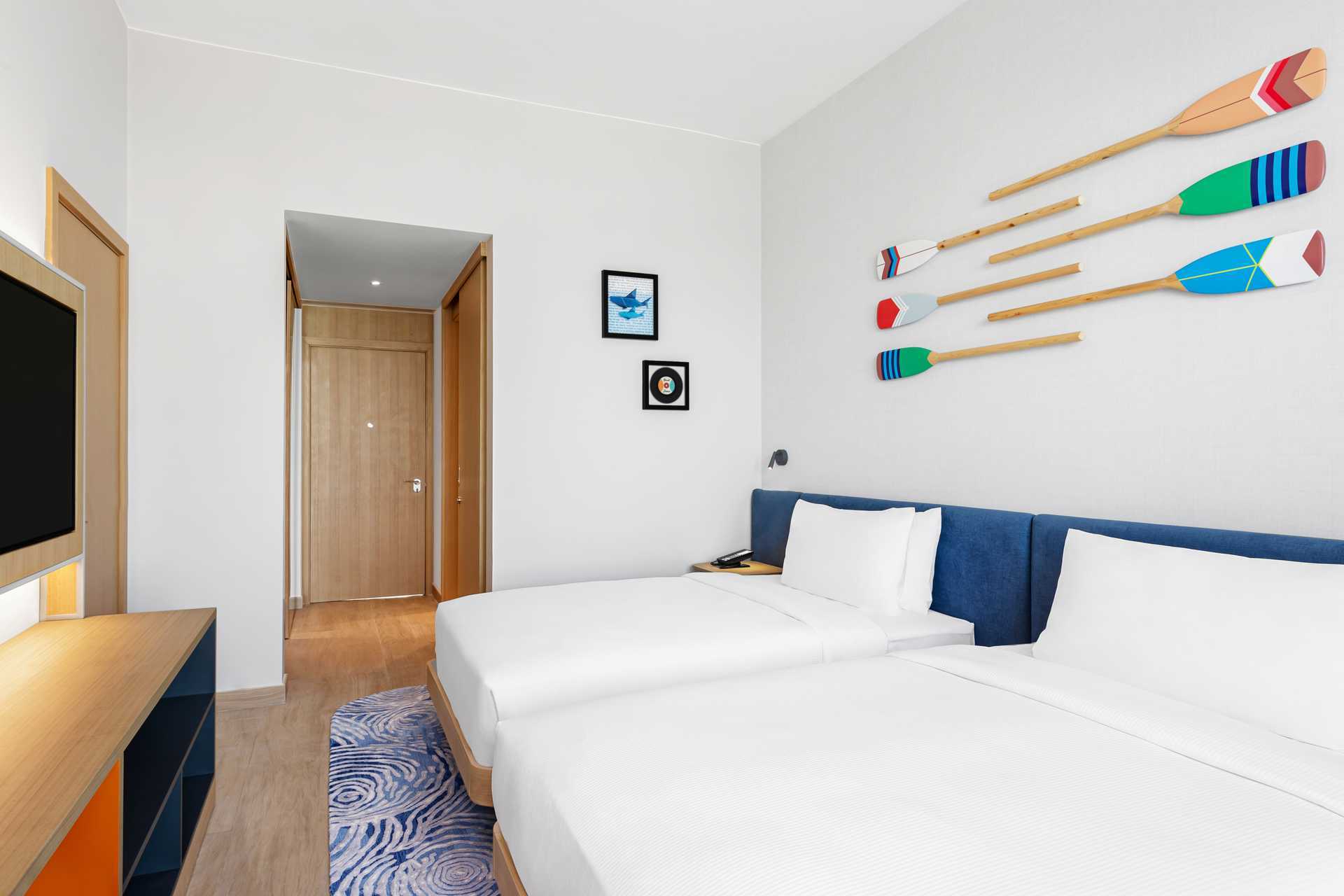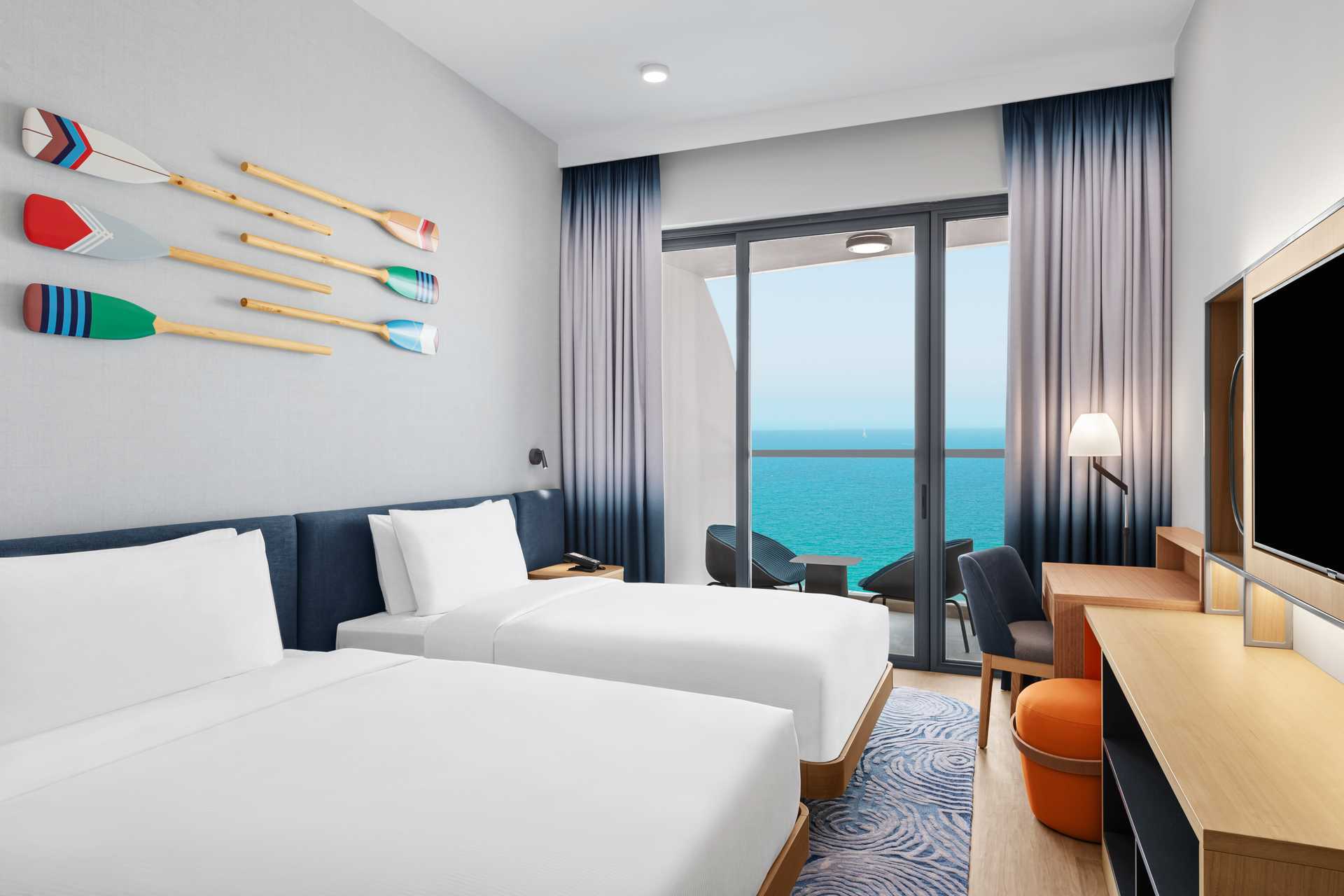 Kahden hengen huone parvekkeella, osassa merinäköala. Parivuode tai kaksi yhden hengen sänkyä. Lisävuodemahdollisuus vuodesohvassa tai osassa olemassa olevia vuoteita. Maksuton wifi, ilmastointi ja tallelokero. Jääkaappi. Tv kansainvälisillä kanavilla. Silitysrauta ja -lauta. Hiustenkuivain. Kylpyhuoneessa suihku ja wc. Siivous 7 krt/viikko.