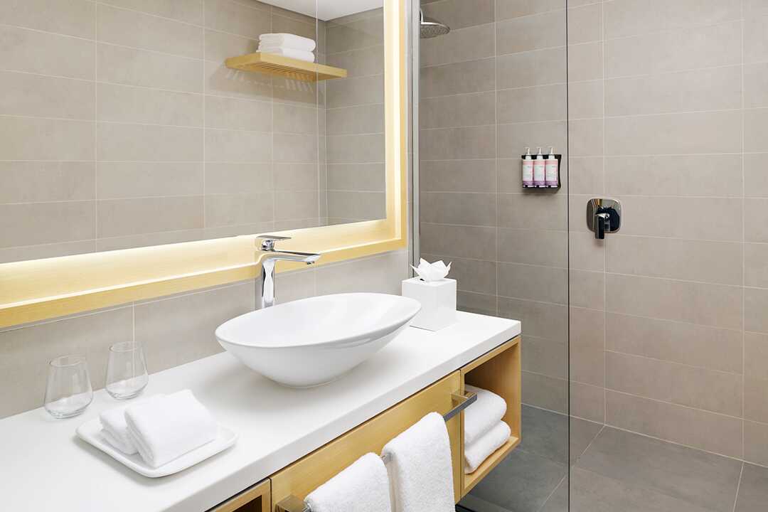 Deluxe-huone parvekkeella, osassa merinäköala. Merinäköalalla varustetut huoneet sijaitsevat kerroksissa kuusi–yksitoista. Parivuode tai kaksi yhden hengen sänkyä. Lisävuodemahdollisuus vuodesohvasta. Maksuton wifi, ilmastointi ja tallelokero. Minibaari lisämaksulla. Vedenkeitin, kahvia ja teetä. Tv kansainvälisillä kanavilla. Kylpytakit ja tossut. Hiustenkuivain. Kylpyhuoneessa suihku ja wc. Siivous 7 krt/viikko.