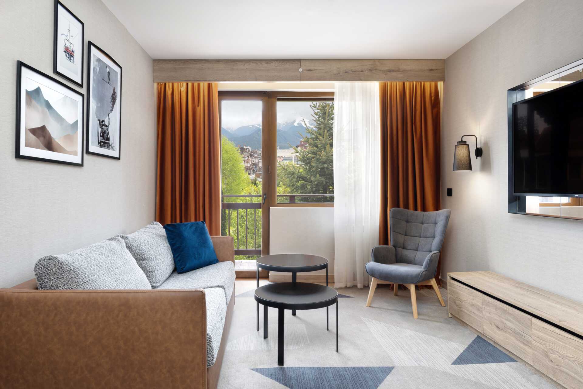 Perhehuoneessa parveke. Makuuhuoneessa parivuode ja huone, jossa on lisävuodemahdollisuus vuodesohvaan. Maksuton wifi, tallelokero ja lämmitys ilmastoinnin kautta. Minibaari. Vedenkeitin, kahvia ja teetä. Tv kansainvälisillä kanavilla. Kokolattiamatto. Silitysrauta ja -lauta. Hiustenkuivain. Kylpyhuoneessa suihku ja wc. Siivous 6 krt/viikko.