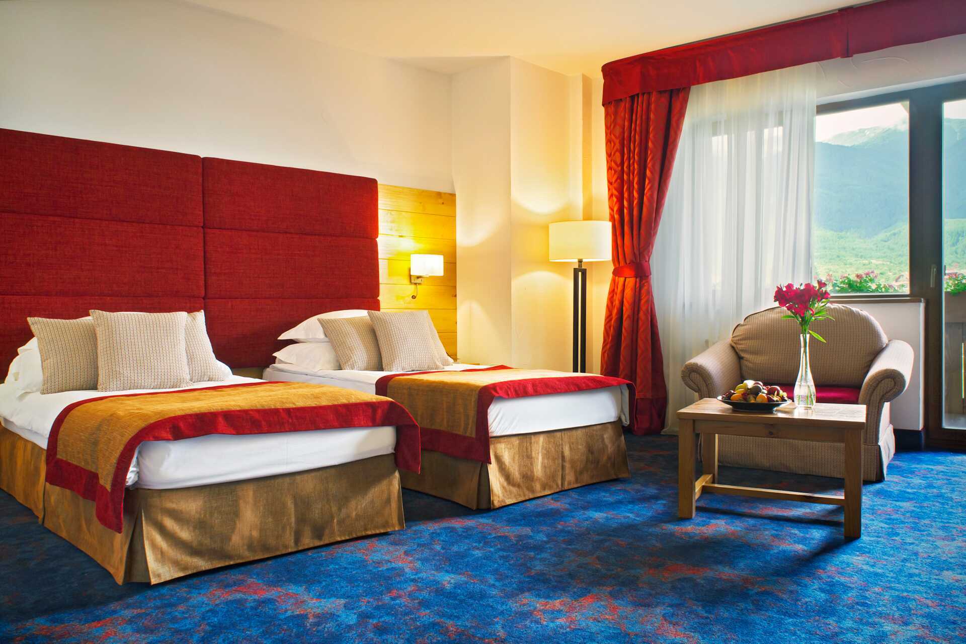 Deluxe-huone, jossa on parveke ja kaupunkinäkymät. Privuode tai kaksi erillistä vuodetta. Mahdollisuus lisävuoteeseen levitettävästä nojatuolista. Maksuton wifi, ilmastointi ja tallelokero. Jääkaappi. Vedenkeitin sekä kahvin ja teen valmistusvälineet. Kokolattiamatto. Hiustenkuivaaja. Kylpytakit ja tossut. Kylpyhuone, jossa kylpyamme, suihku ja wc. Siivous 7 krt/viikko.