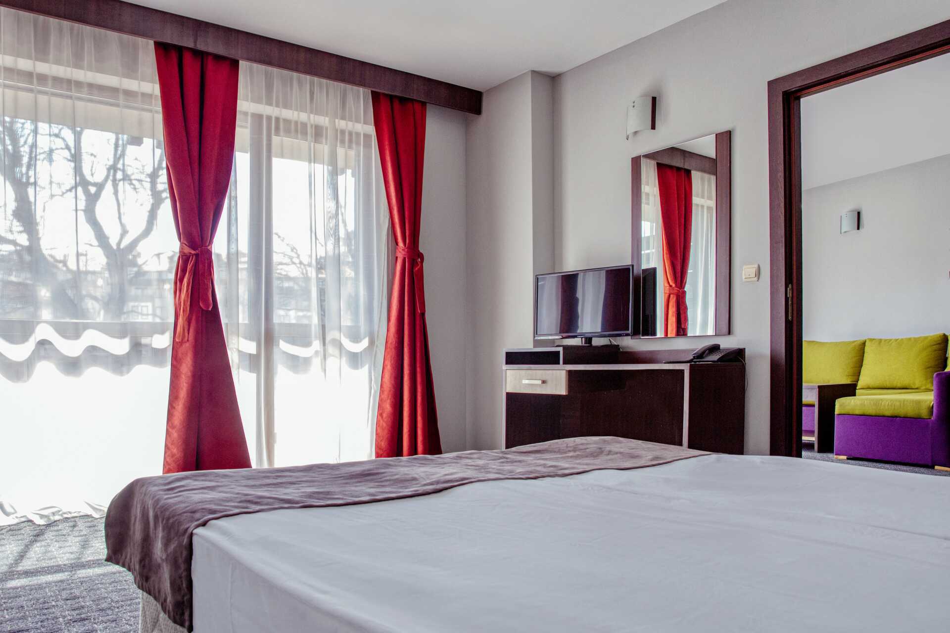 Perhehuone, jonka parvekkeelta on näköala kaupunkiin tai vuorille. Perhehuoneet koostuvat makuuhuoneesta ja olohuoneesta. Kaksi yhden hengen vuodetta. Mahdollisuus lisävuoteeseen kahdesta vuodesohvasta. Wifi, ilmastointi ja tallelokero maksutta. Jääkaappi. Vedenkeitin. TV kansainvälisillä kanavilla. Kokolattiamatto. Hiustenkuivaaja. Kylpyhuone, jossa suihku ja wc. Siivous 7krt/viikko.