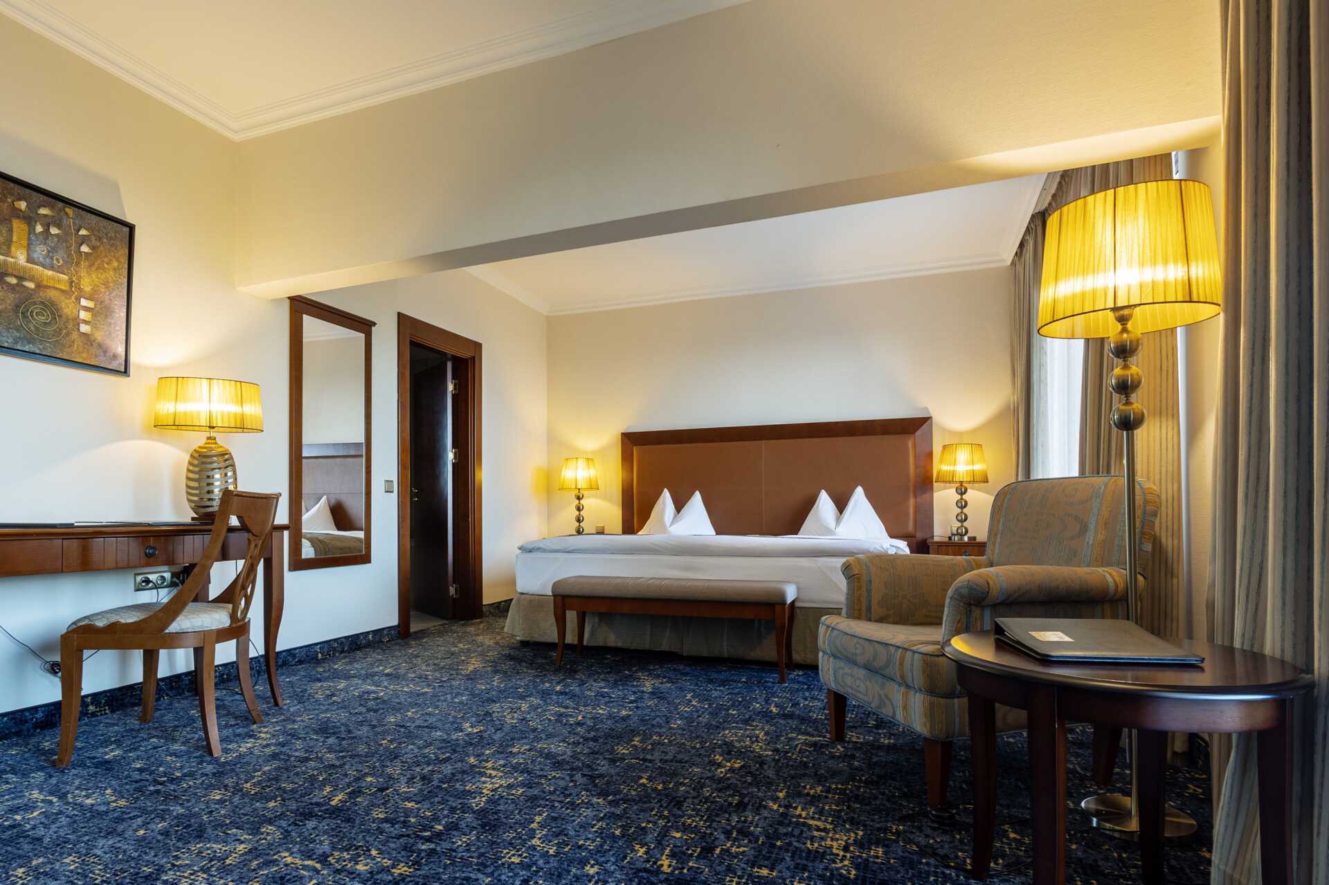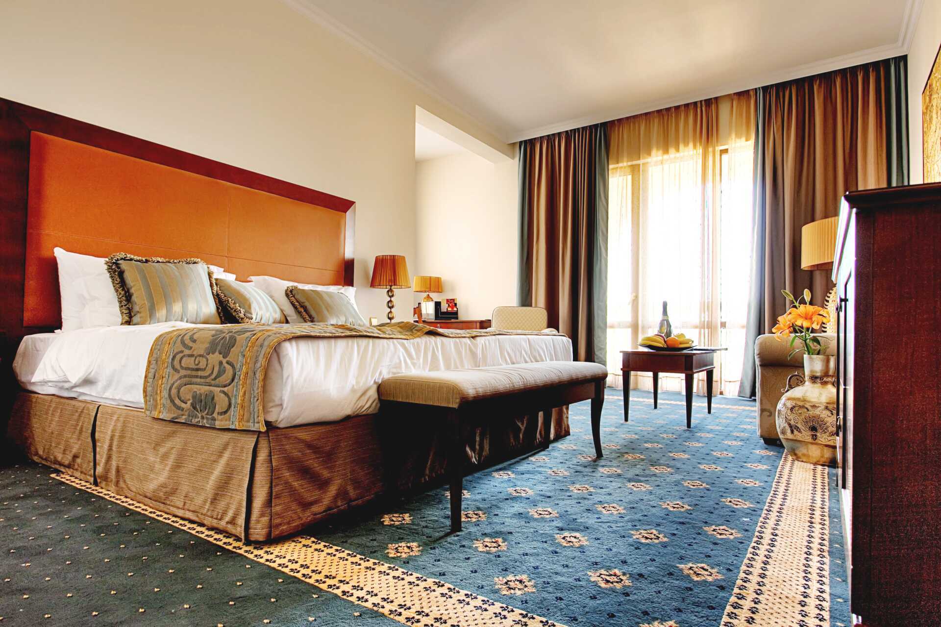 Superior-huone parvekkeella. Parivuode. Lisävuodemahdollisuus vuodesohvasta. Maksuton wifi, ilmastointi ja tallelokero. Minibaari lisämaksulla. Vedenkeitin, kahvia ja teetä. Tv kansainvälisillä kanavilla. Kokolattiamatto. Silitysrauta ja -lauta. Hiustenkuivaaja, kylpytakki ja tohvelit. Kylpyhuoneessa kylpyamme, suihku ja wc. Siivous 7 krt/viikko.
