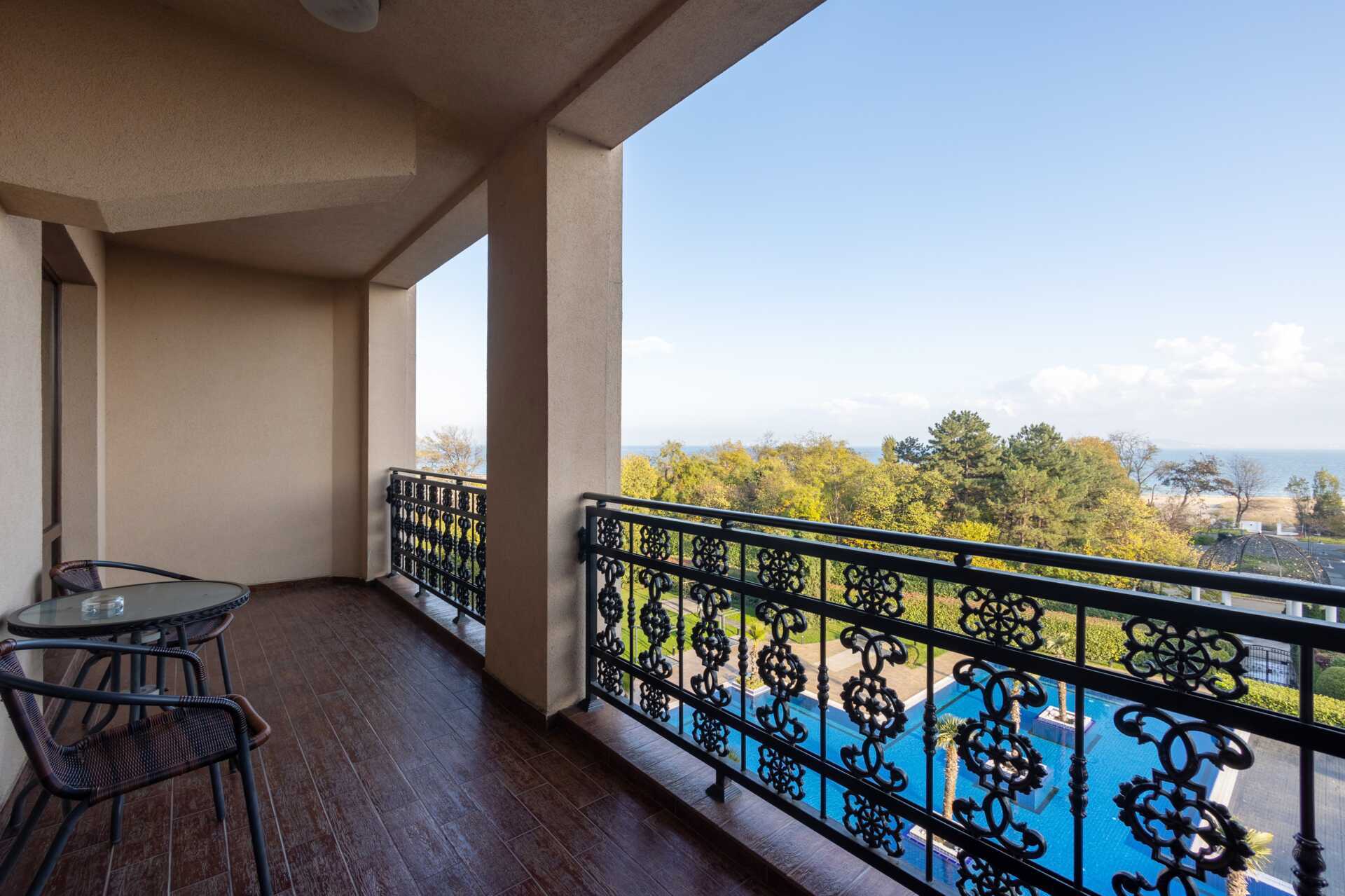 Superior-huone, Seafront parvekkeella ja merinäköalalla. Parivuode. Lisävuodemahdollisuus vuodesohvasta. Maksuton wifi, ilmastointi ja tallelokero. Minibaari lisämaksulla. Vedenkeitin, kahvia ja teetä. Tv kansainvälisillä kanavilla. Silitysrauta ja -lauta. Kokolattiamatto. Hiustenkuivain. Kylpytakit ja tossut Kylpyhuoneessa kylpyamme, suihku ja wc. Siivous 7 krt/viikko.