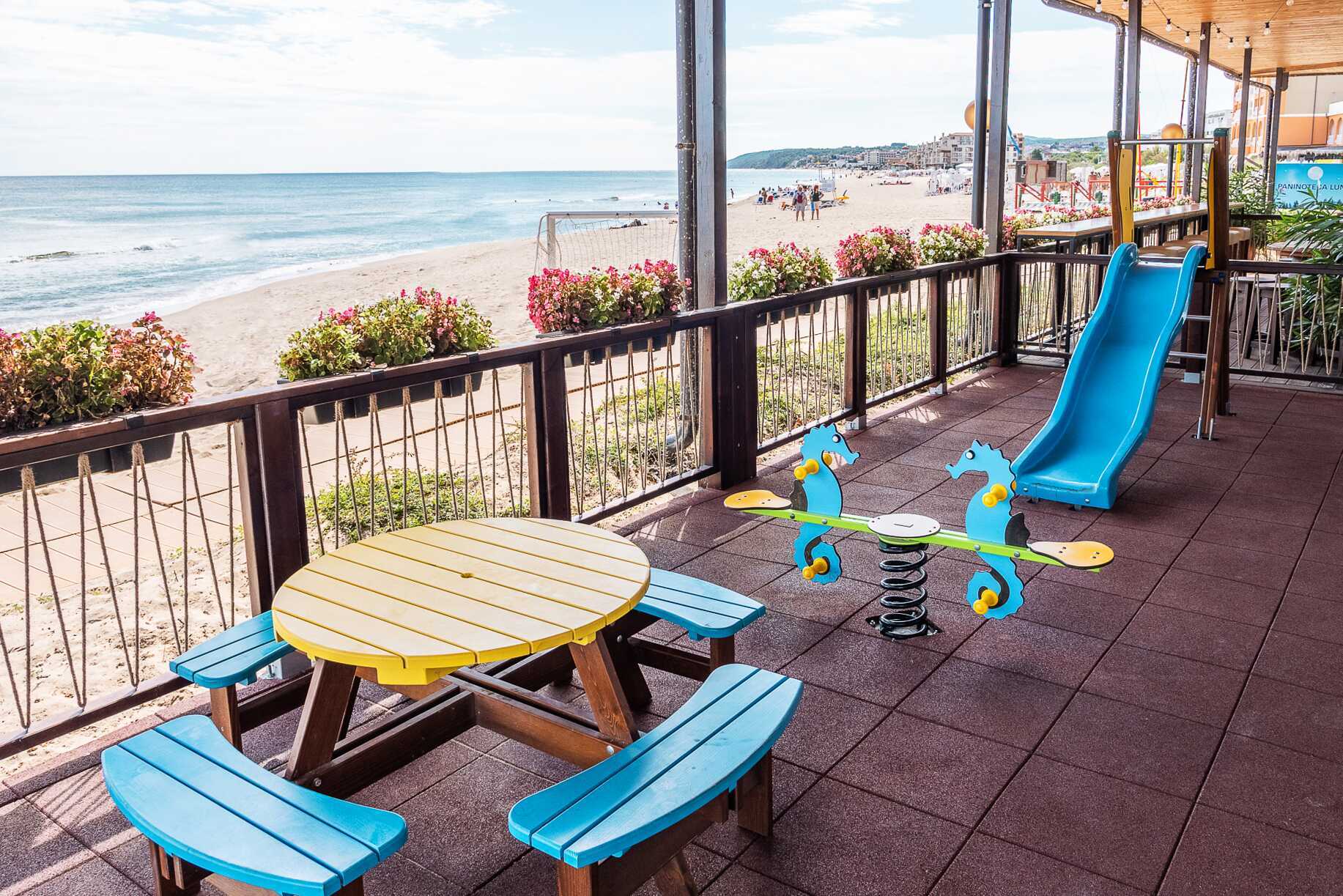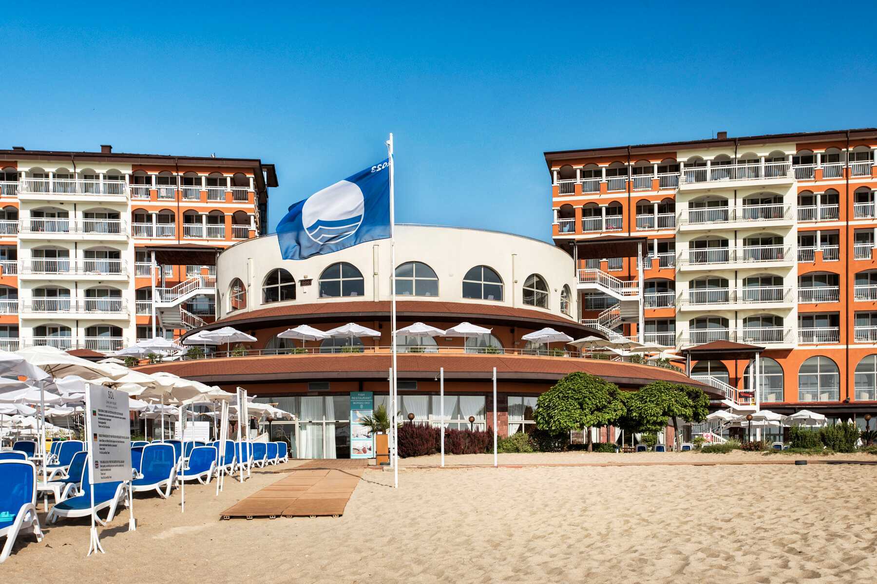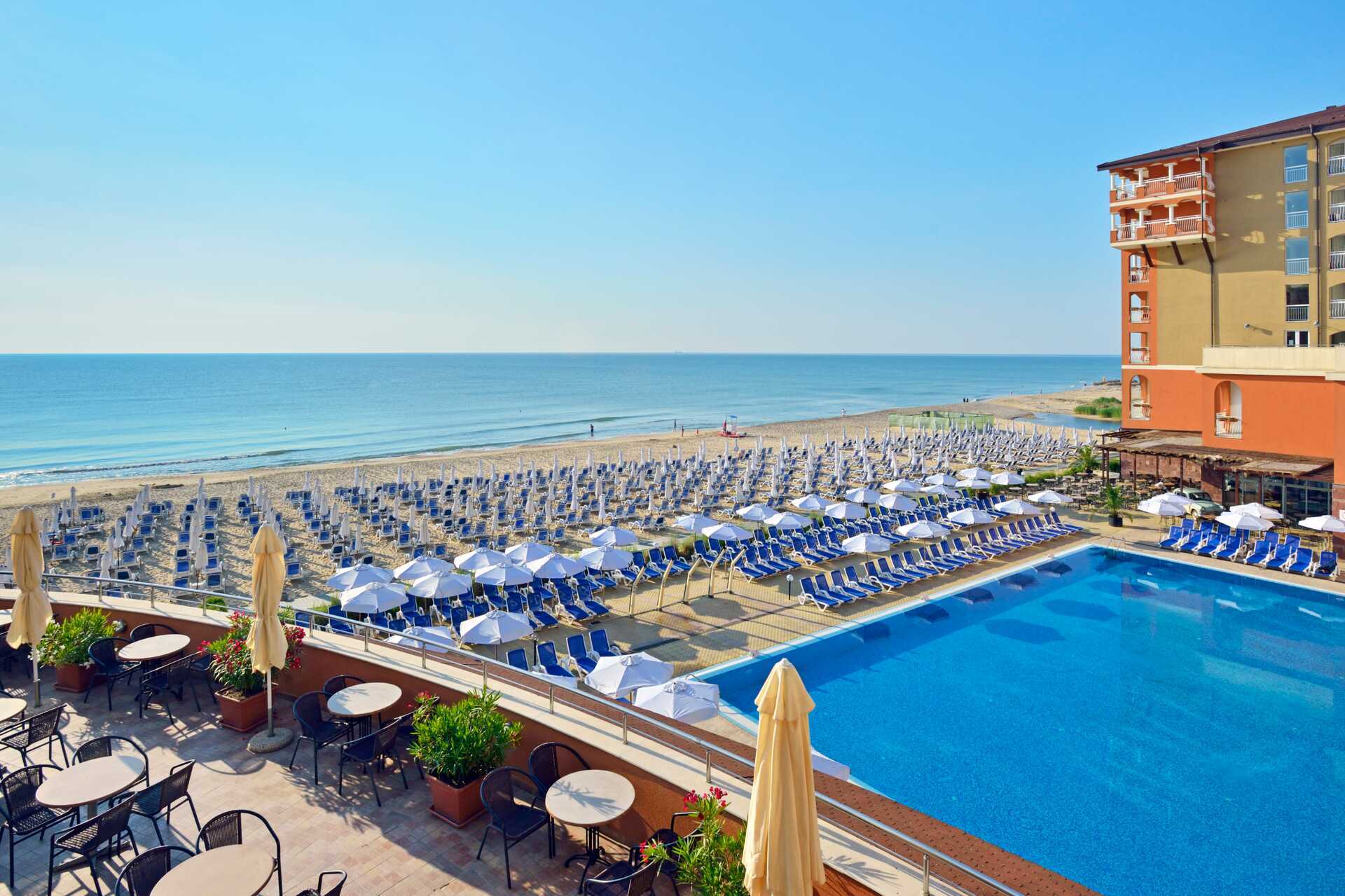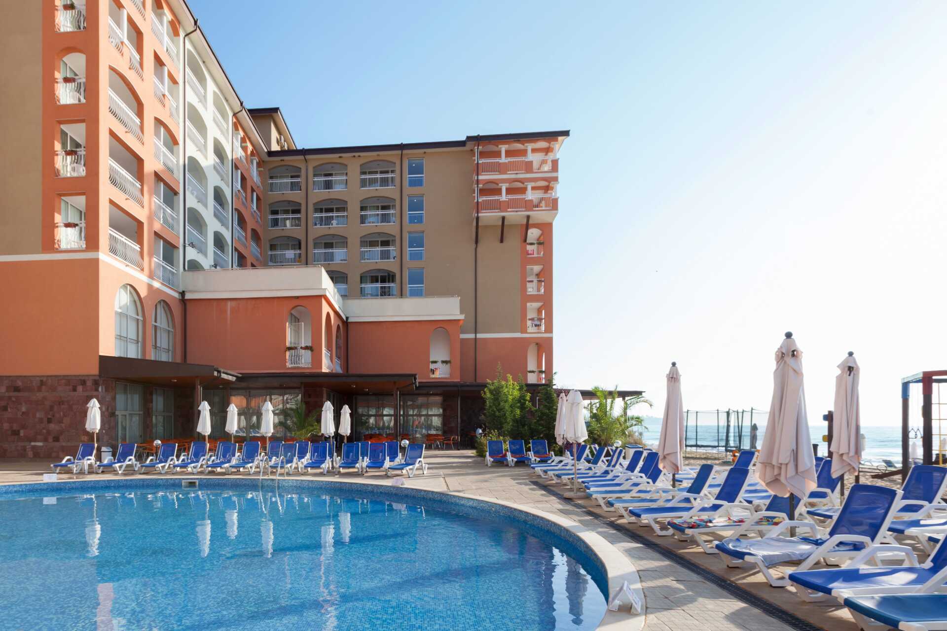 Allasalue, jossa on uima-allas ja erillinen lastenallas. Uima-allas, jossa on neljä vesiliukumäkeä (pituusraja 120 cm) ja uima-allas, jossa on kaksi vesiliukumäkeä pienemmille lapsille. Vesiliukumäet ovat avoinna hotellin aikataulun mukaisesti 1.6.–15.9., ja aukiolo riippuu sääolosuhteista. Hotelli sijaitsee aivan rannalla. Aurinkotuolit, aurinkovarjot ja pyyhkeet maksutta sekä uima-altaalla että rannalla. Rannalla voi harrastaa vesiurheilua (ulkopuolinen toimija).