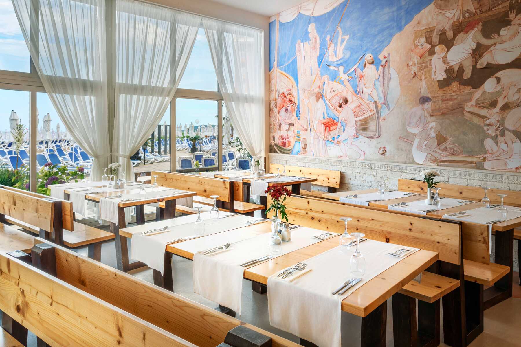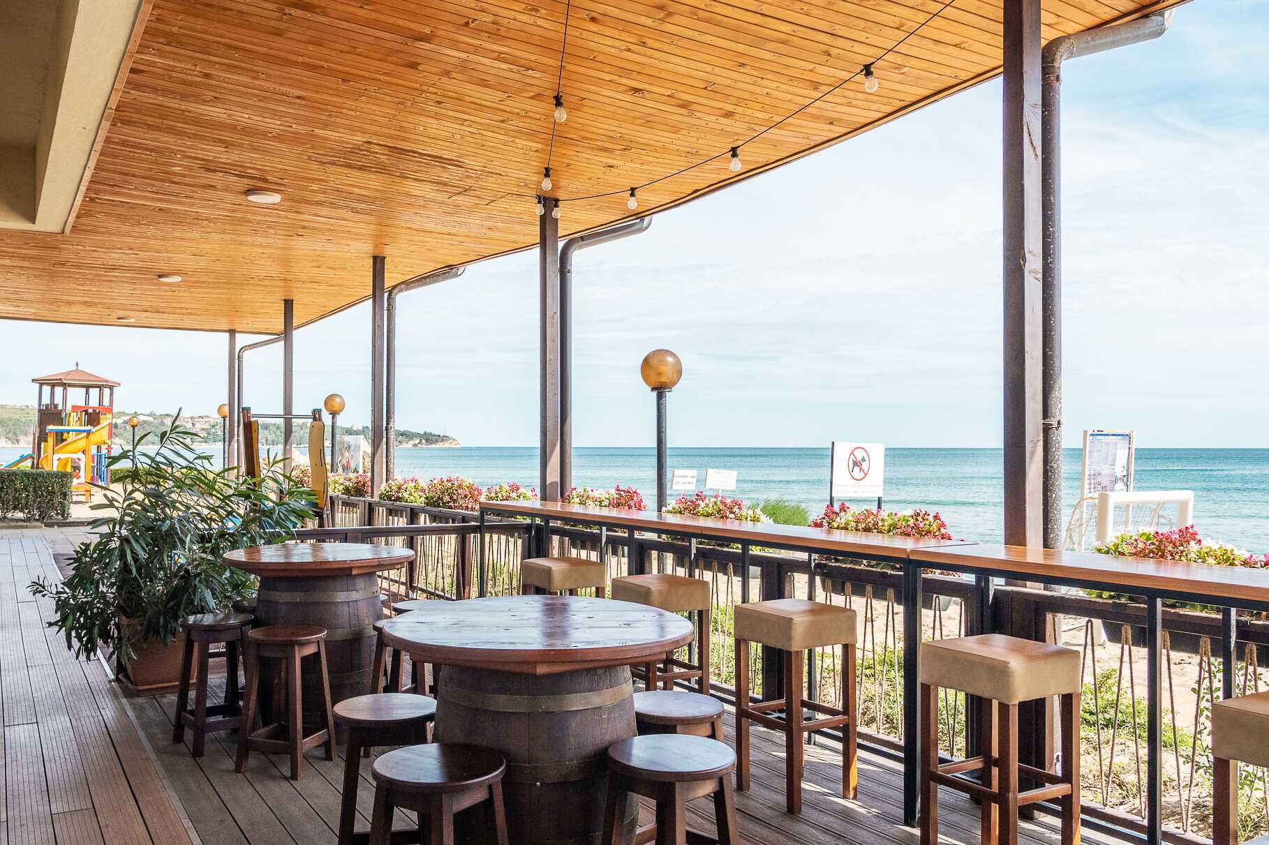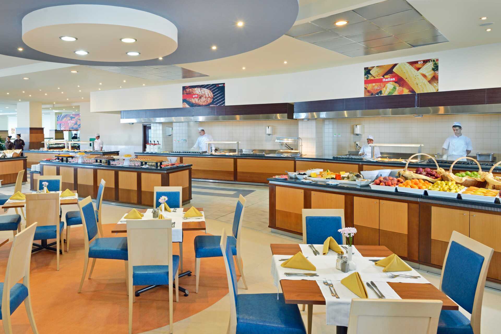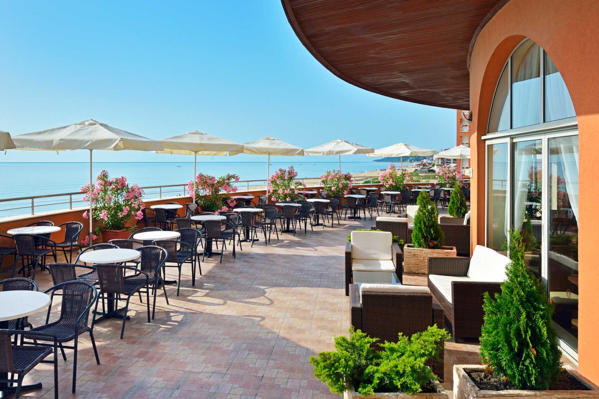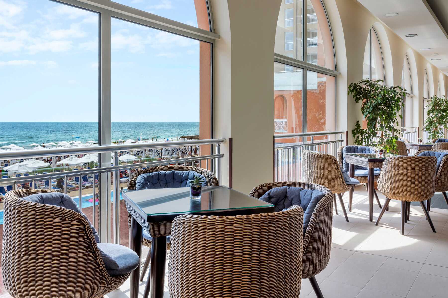 Buffetravintolassa tarjoillaan aamupalaa, lounasta ja illallista. Kesäkuun puolivälistä syyskuun puoliväliin voit myös valita italialaisia erikoisuuksia Osteria La Spiaggiassa, bulgarialaista ruokaa Haemusissa tai mereneläviä Morsko Okossa. Kolmeen erikoisravintolaan vaaditaan pöytävaraus. Välipaloja ja voileipiä tarjoillaan Paellador Levantessa, Paninoteca Lunassa tai Osteria La Spiaggian snackbaarissa. Yksi baari uima-altaalla ja yksi aulassa.