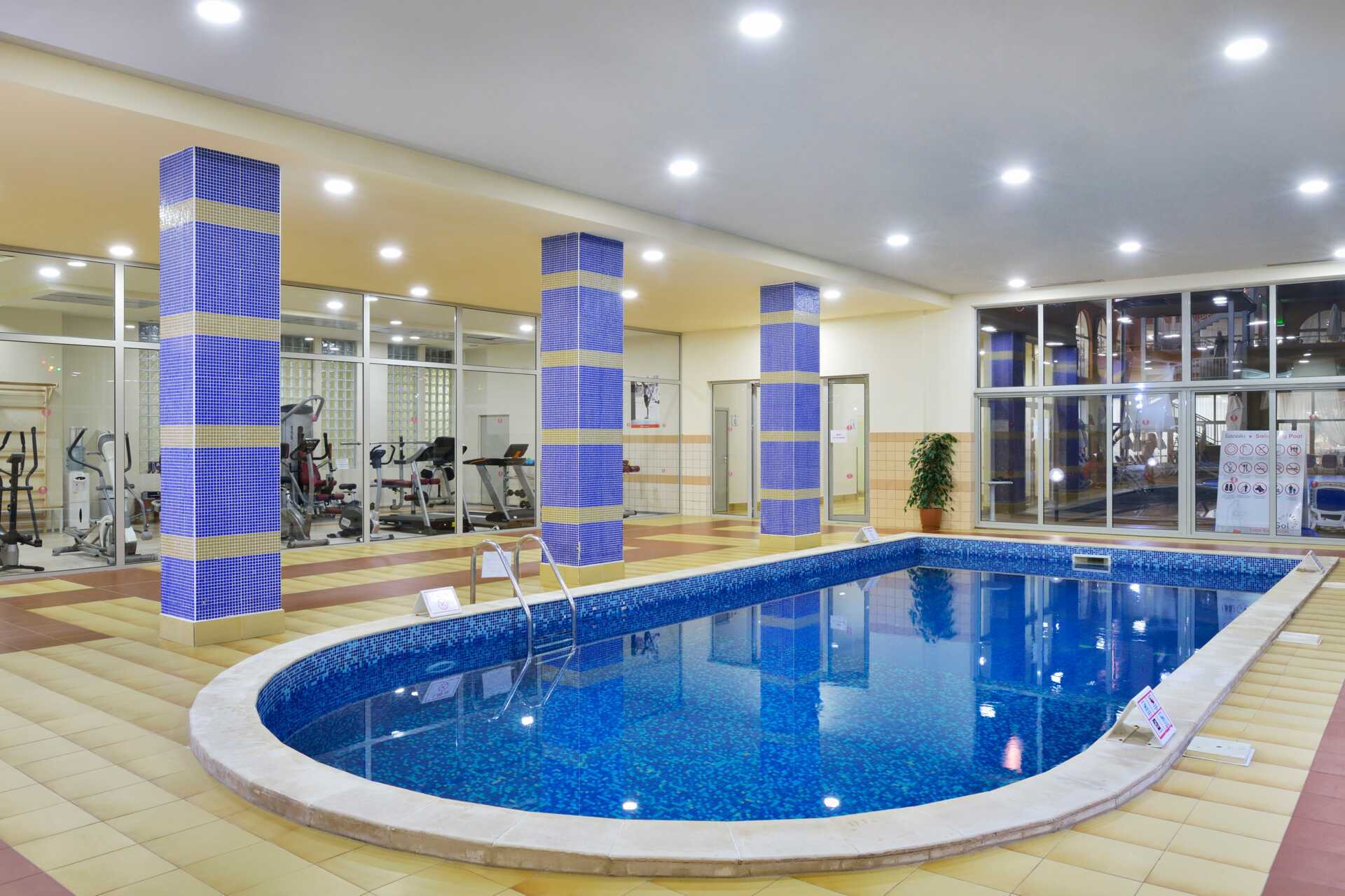 Maksuton kuntosali. Pöytätennis, rantalentopallo, ryhmäliikunta kuten jooga, zumba ja aerobic, maksutta. Biljardi lisämaksusta. Sisäuima-allas avoinna toukokuussa ja syys-lokakuussa. Hotellin ylläpitämä lastenkerho 4–12-vuotiaille lapsille ja ohjelmaa teini-ikäisille. Iltaviihdettä baarissa muutamana iltana viikossa. Maksuton wifi koko hotellialueella. Spa, jossa infrapunasauna, höyrysauna, hieronta ja hoitoja, kaikki lisämaksusta. Hotelli koostuu useista 4–7-kerroksisista rakennuksista.