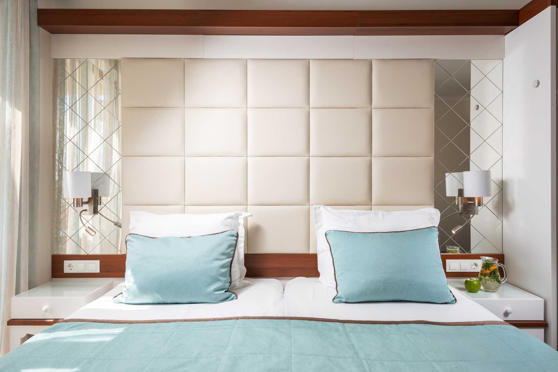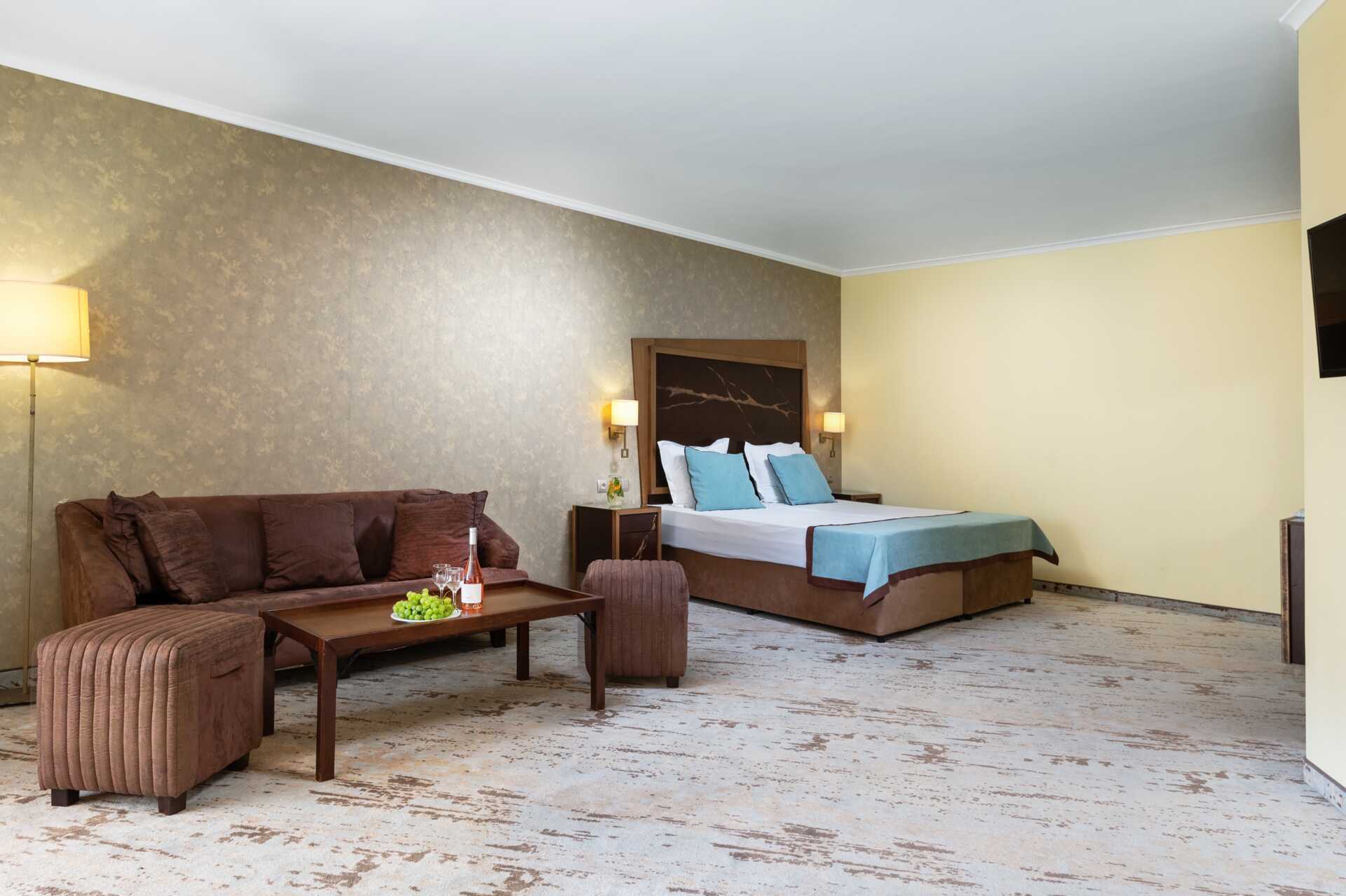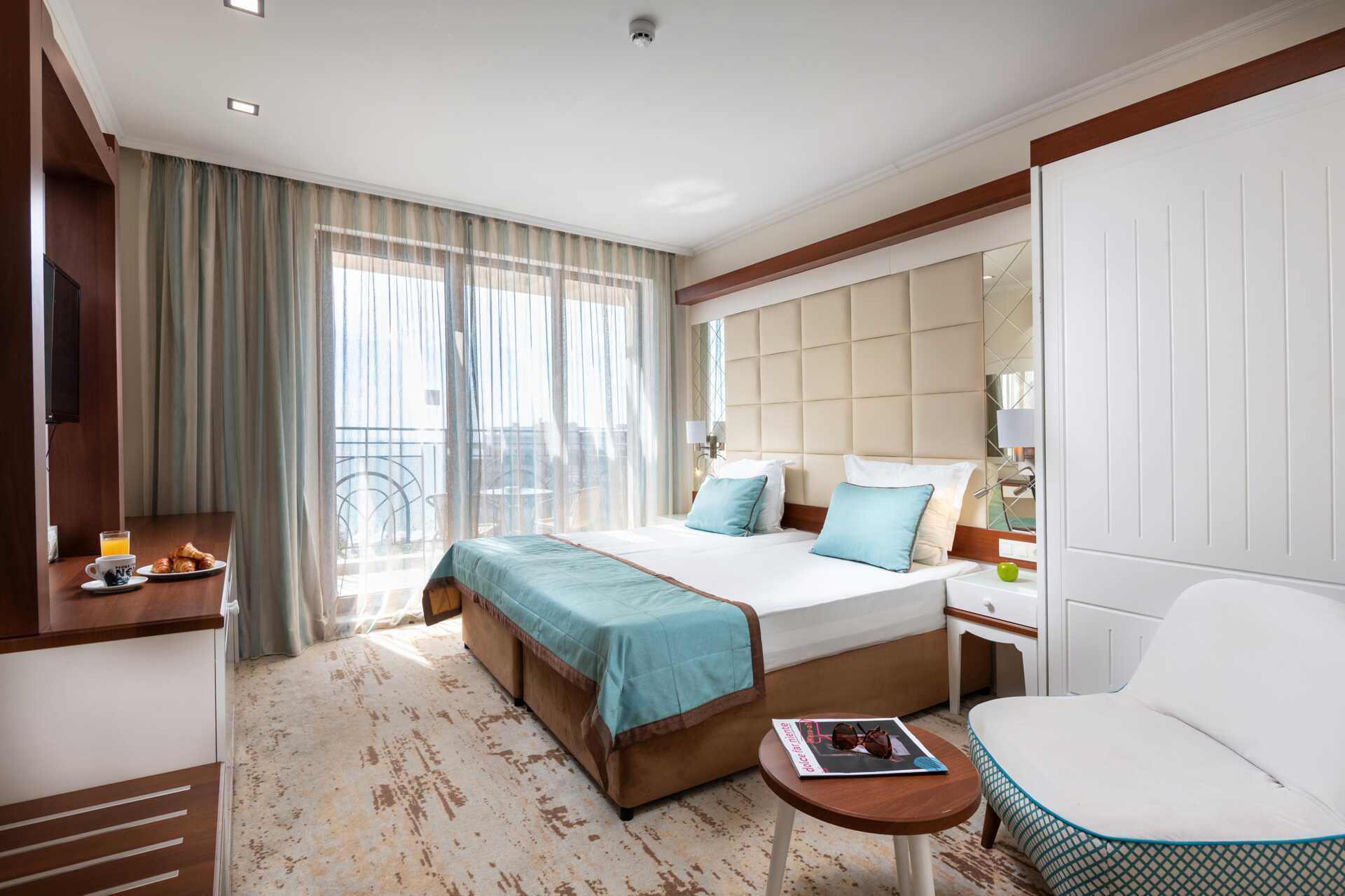 Superior-huone parvekkeella. Parivuode tai kaksi yhden hengen sänkyä. Mahdollisuus lisävuoteeseen kokoontaitettavasta vuoteesta. Maksuton wifi, ilmastointi ja tallelokero. Minibaari. Vedenkeitin, kahvia ja teetä. Tv kansainvälisillä kanavilla. Hiustenkuivain. Kylpyhuoneessa kylpyamme, erillinen suihku ja wc. Siivous 6 krt/viikko.