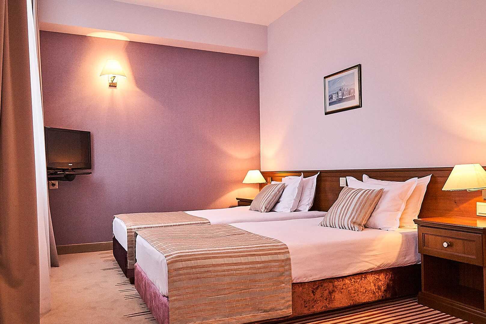 Kahden hengen huone, ilman ulkotilaa. Parivuode. Mahdollisuus saada lisävuode vuodesohvaan. Maksuton wifi ja ilmastointi lämmitykseen. Jääkaappi. Tv kansainvälisillä kanavilla. Kokolattiamatto. Hiustenkuivain. Kylpyhuoneessa amme/suihku ja wc. Siivous 6 krt/viikko.