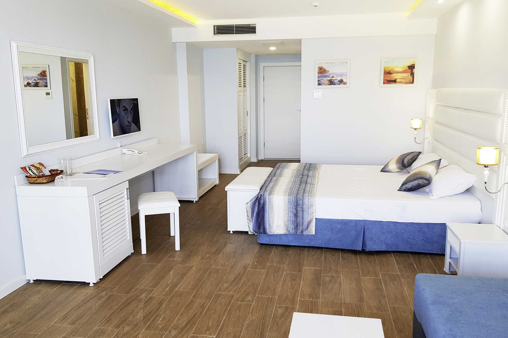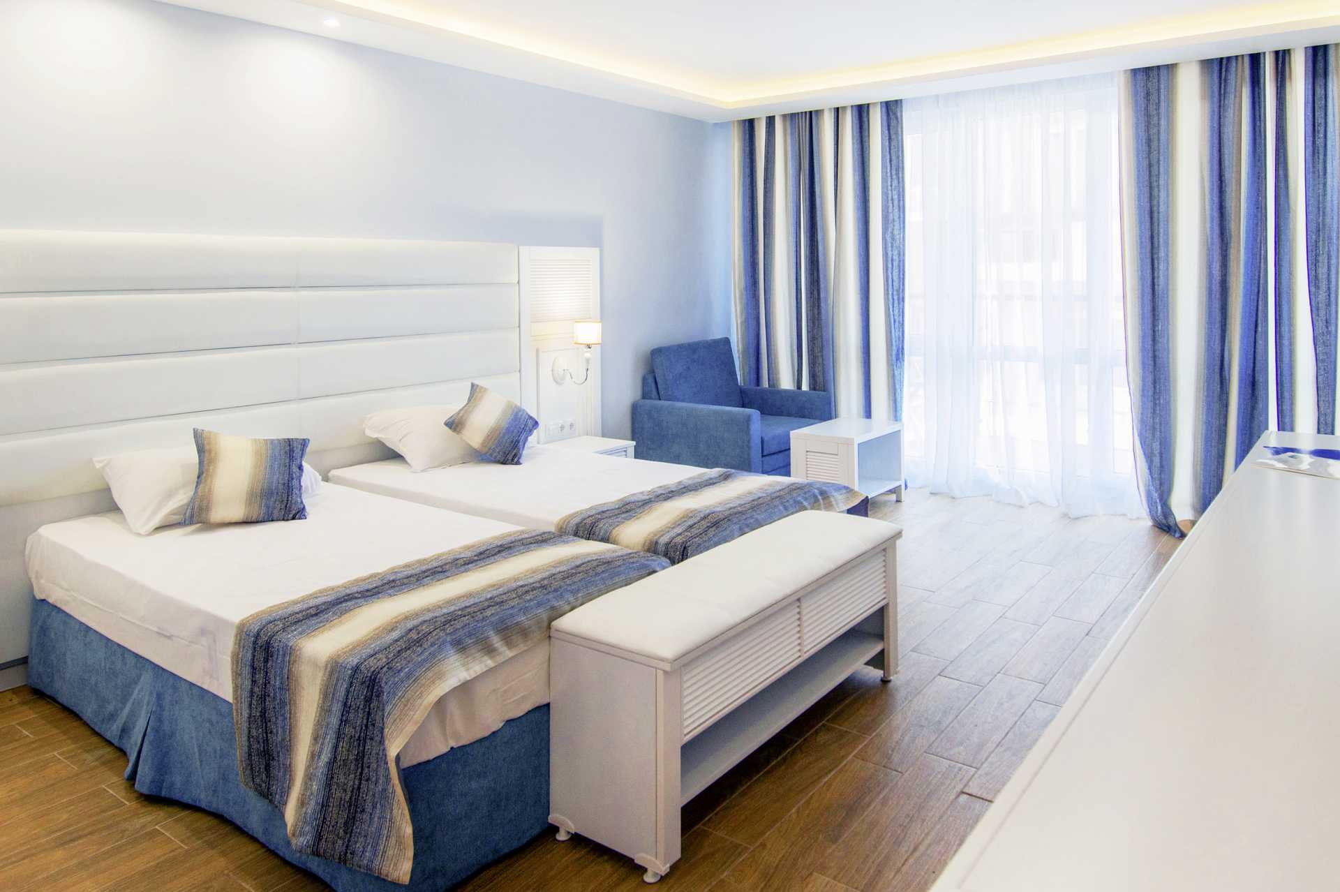 Superior-huoneissa on parveke, joista osasta on merinäköala. Kaksi yhden hengen sänkyä. Lisävuodemahdollisuus vuodesohvalla, nojatuolissa tai tavallisessa sängyssä. Maksuton wifi ja ilmastointi. Tallelokero lisämaksusta. Jääkaappi. Tv kansainvälisillä kanavilla. Hiustenkuivain. Suihku ja wc. Siivous 7 krt/viikko.