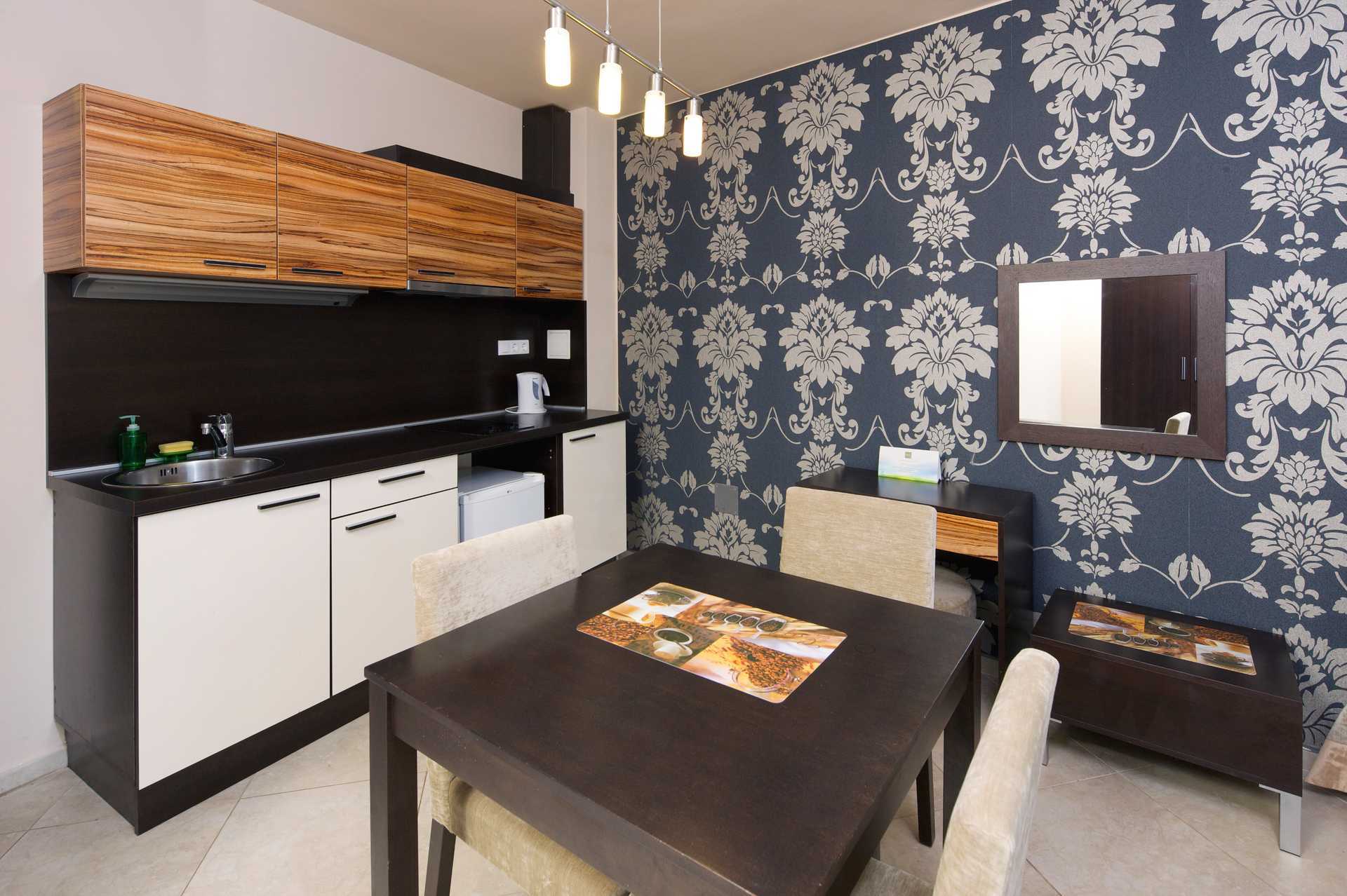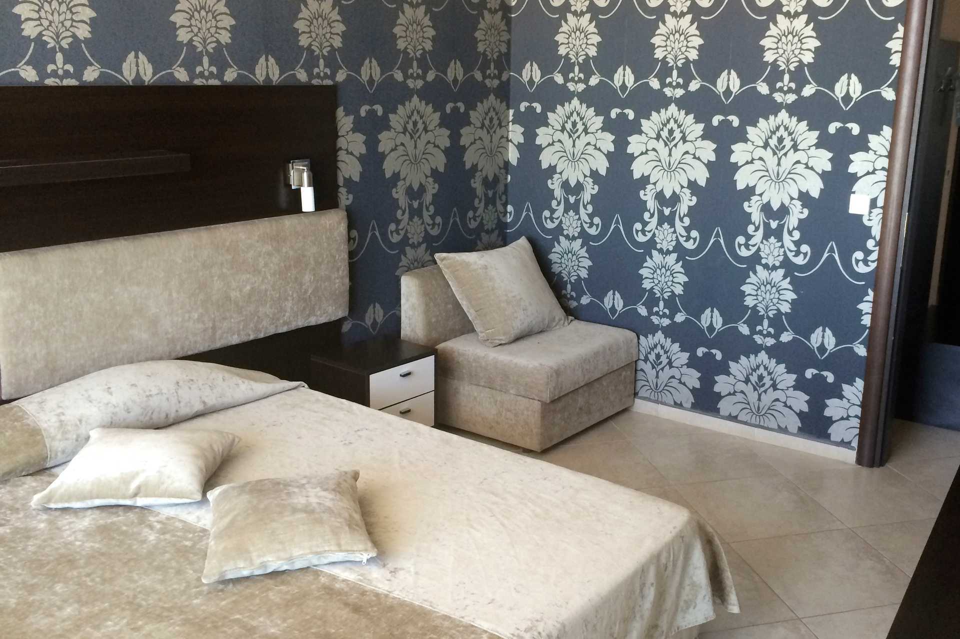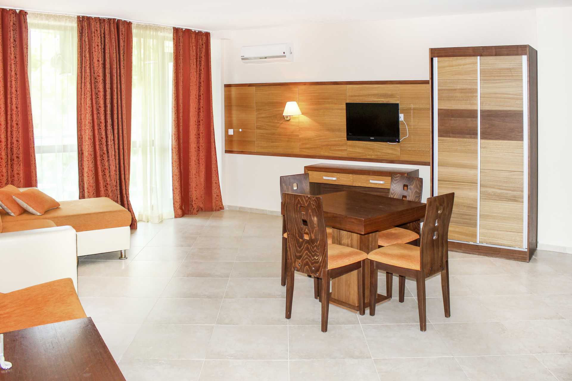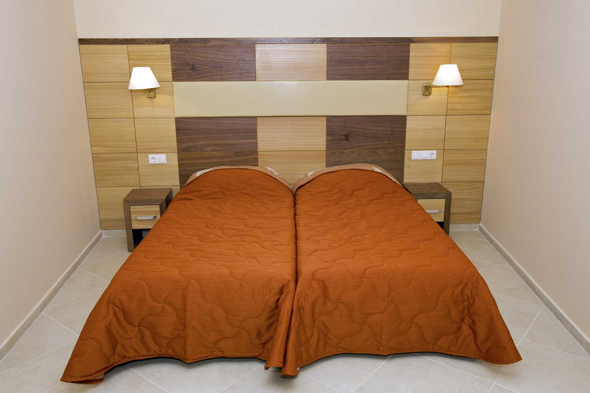 Suuri yhden hengen huone parvekkeella. Yhdistetty makuuhuone ja minikeittiö. Parivuode tai kaksi yhden hengen sänkyä. Lisävuodemahdollisuus vuodesohvasta. Minikeittiössä keittolevyt, uuni, jääkaappi, vedenkeitin ja yksinkertainen keittiövarustus. Maksuton wifi, ilmastointi ja tallelokero. Tv kansainvälisillä kanavilla. Hiustenkuivain. Suihku ja wc. Siivous 7 krt/viikko.