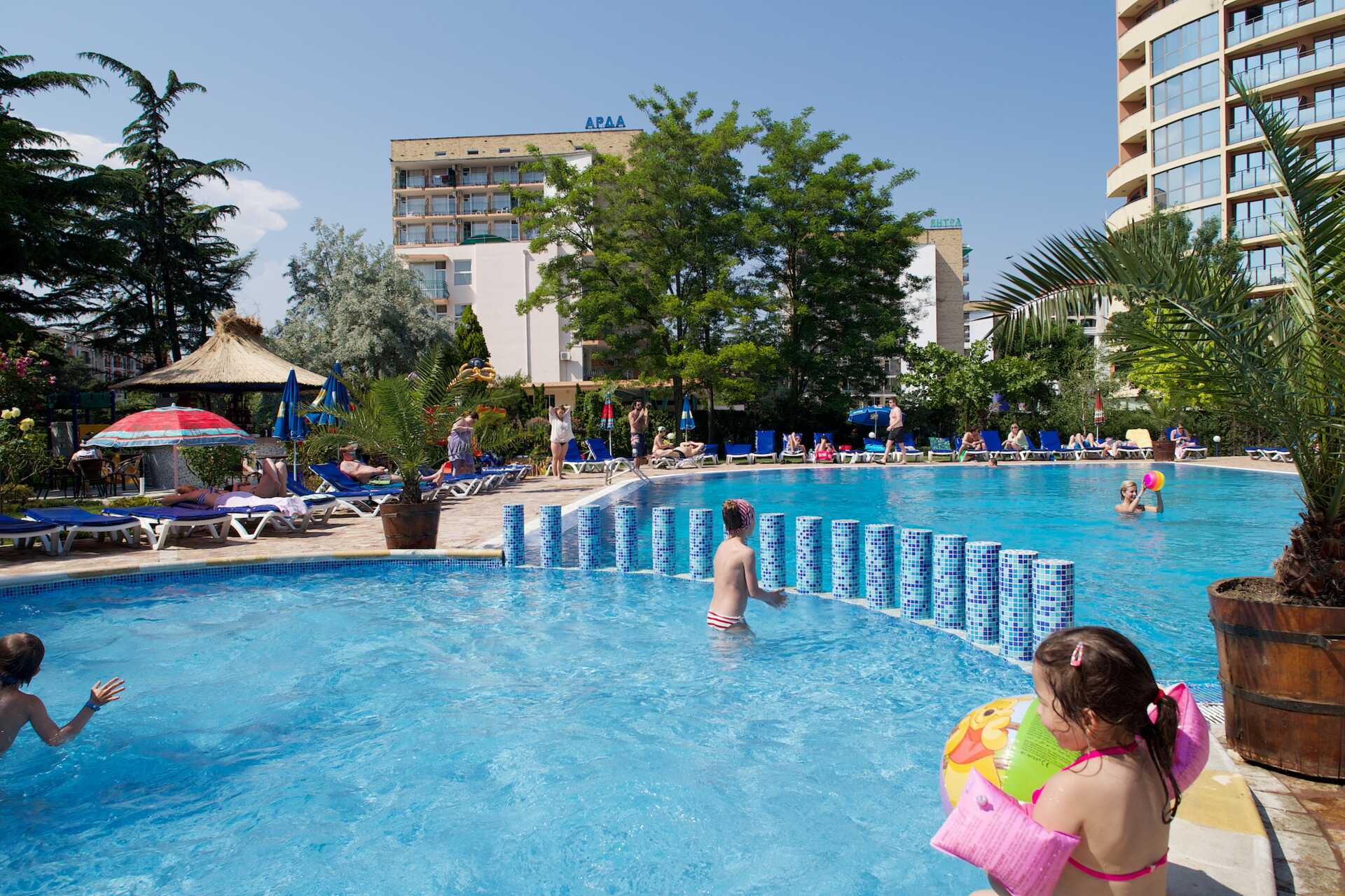 Dunav sijaitsee Sunny Beachin eteläosassa, ja hotellilta on lyhyt kävelymatka kauppoihin, ravintoloihin ja baareihin. Viihtyisä allasalue suurella uima-altaalla, jossa on matalampi osa lapsille. Aurinkotuoleja ja -varjoja, sekä allasbaari joka tarjoilee pientä purtavaa.