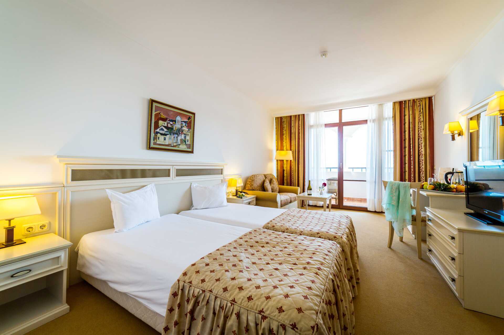 Maksuton wifi vastaanotossa. Noin 100 metriä sisarhotellista Royal Palace Helena Park. Rantapromenadi erottaa hotellin rannasta.