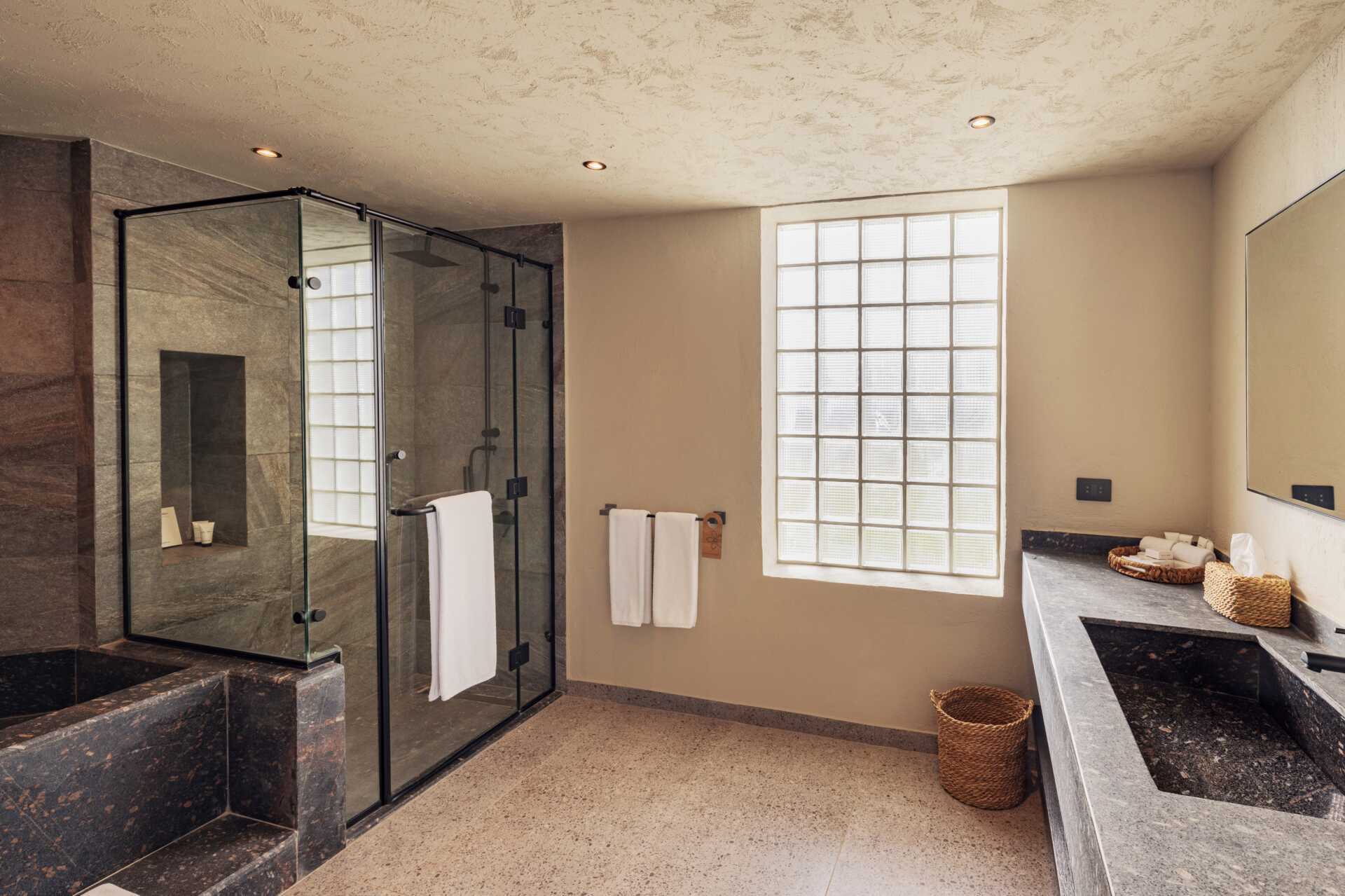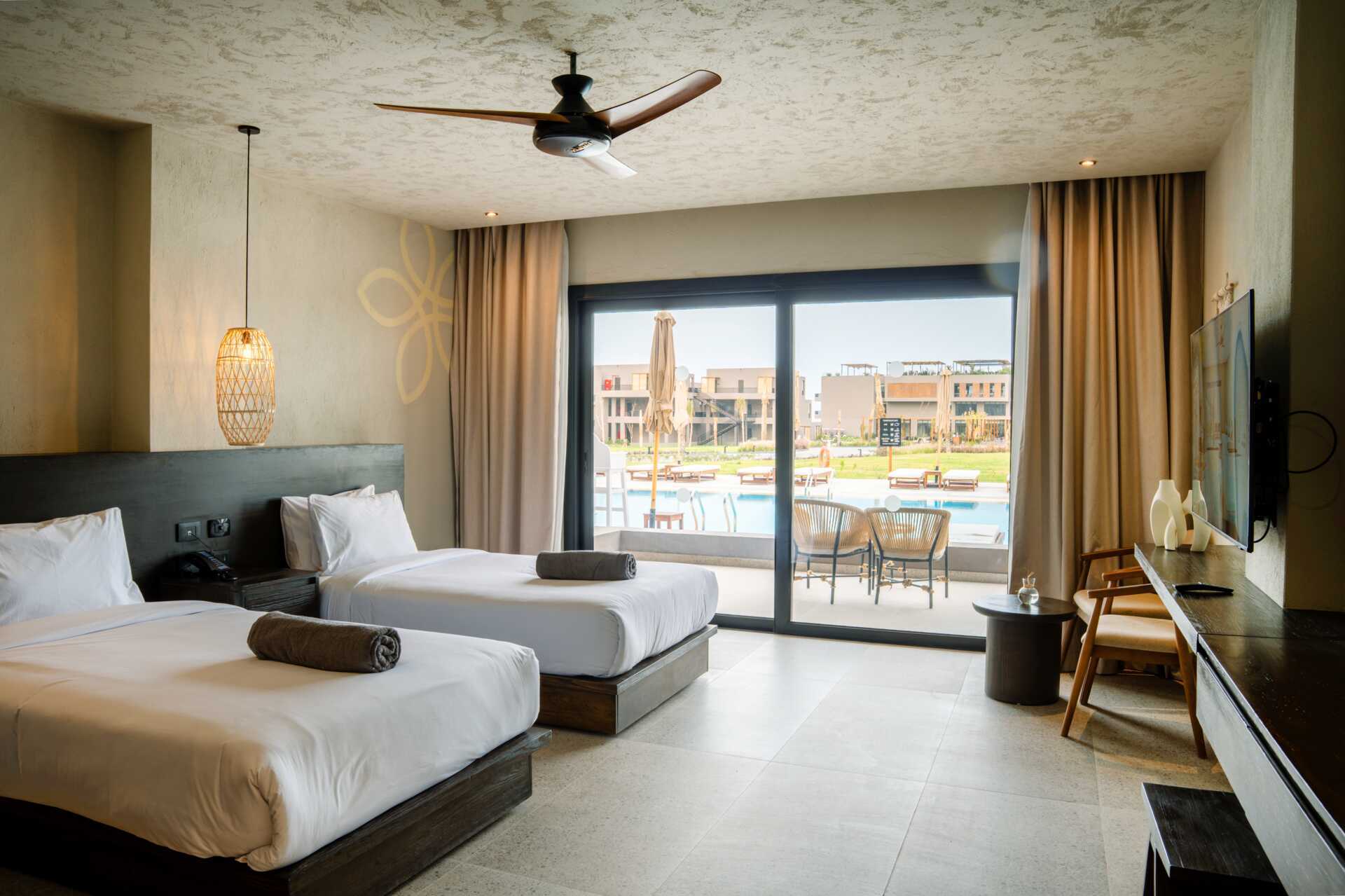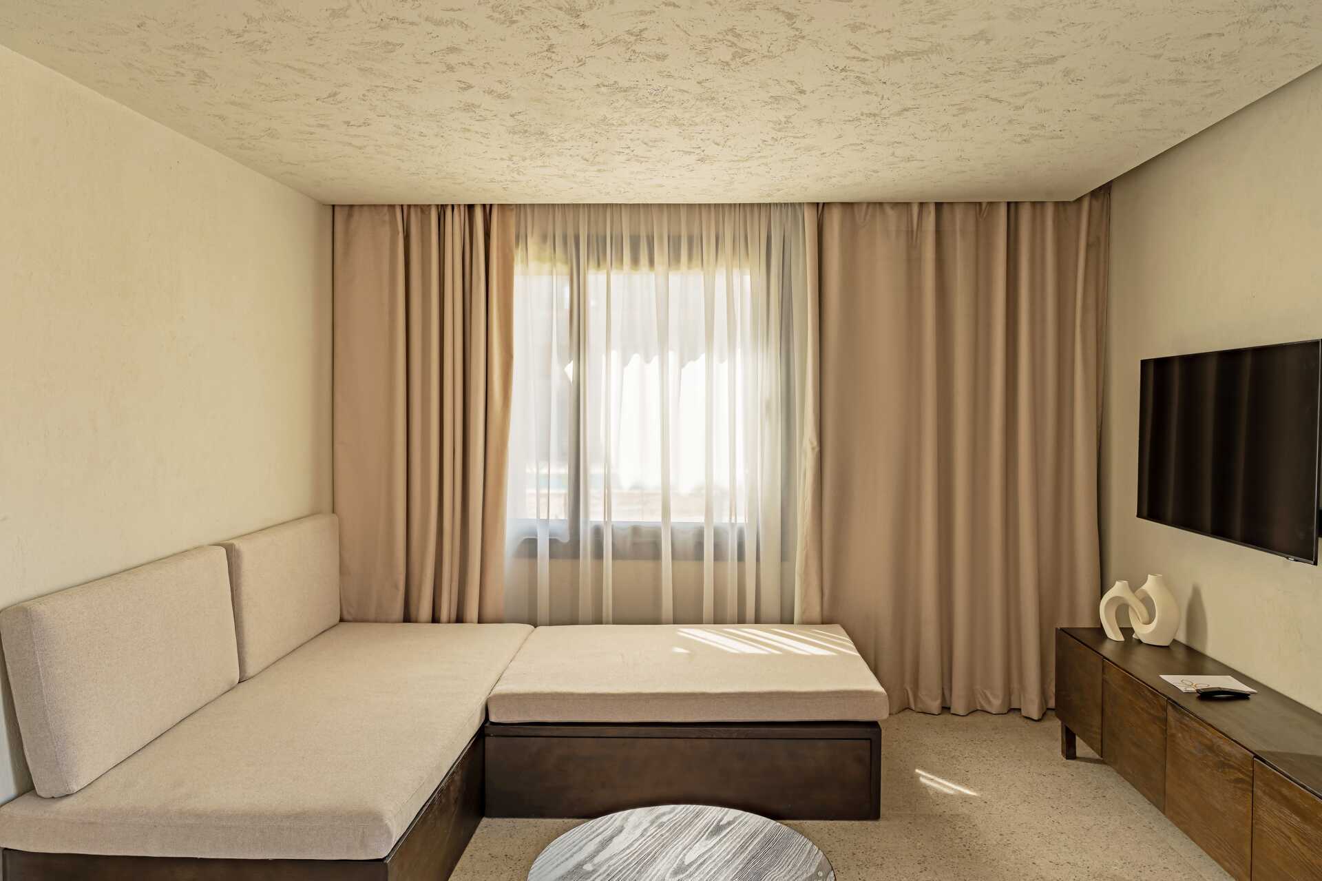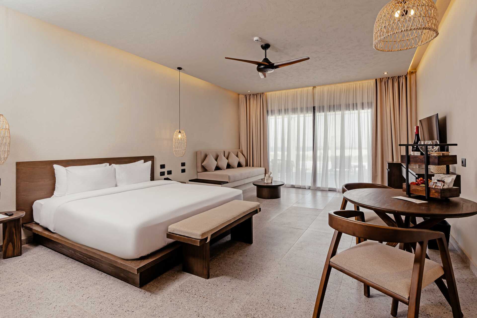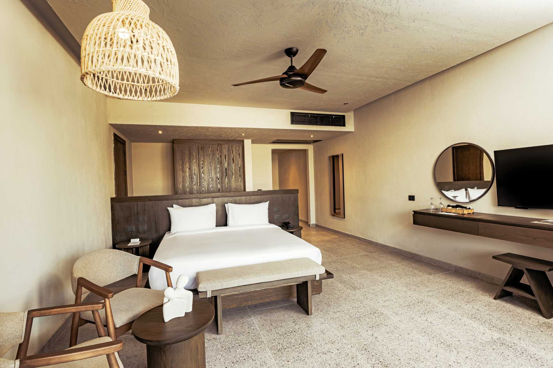 Juniorsviitissä on maaterassi ja jaettu uima-allas, osasta huoneissa on merinäköala. Parivuode. Lisävuodemahdollisuus vuodesohvasta. Maksuton wifi, ilmastointi ja tallelokero. Minibaari lisämaksulla. Vedenkeitin, kahvia ja teetä. Tv kansainvälisillä kanavilla. Hiustenkuivain. Suihku ja wc. Siivous 7 krt/viikko.