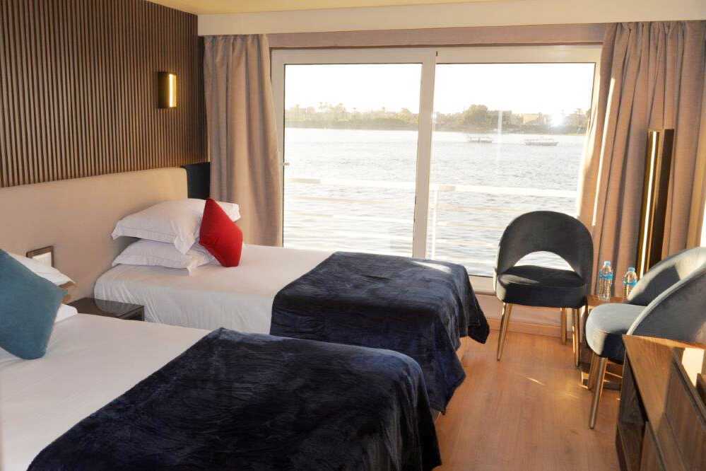 Hytti isoilla ikkunoilla. Parivuode tai kaksi yhden hengen sänkyä. Vuonna 2024 remontoidut hytit vaihtelevat sisustukseltaan ja kooltaan. Kylpyhuoneessa suihku ja wc. Hiustenkuivain. Maksuton ilmastointi ja tallelokero. Minibaari ja tv satelliittikanavilla. Tv toimii vain, kun laiva on laiturissa. Alle 2-vuotiaat lapset lasketaan lisävuoteella majoittuviksi henkilöiksi.