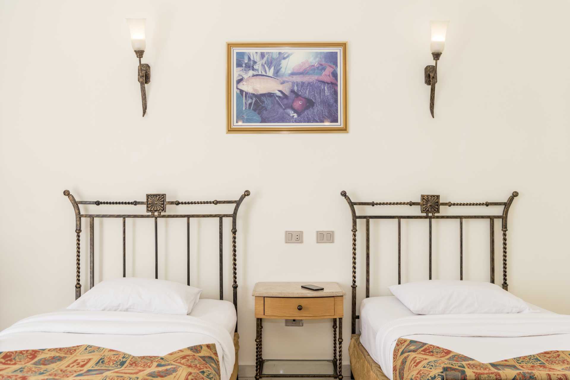 Kahden hengen huone parvekkeella tai terassilla. Parivuode tai kaksi yhden hengen sänkyä. Lisävuodemahdollisuus kokoontaitettavassa vuoteessa. Maksuton ilmastointi. Tallelokero ja wifi lisämaksulla. Minibaari lisämaksulla. Vedenkeitin, kahvia ja teetä. Tv kansainvälisillä kanavilla. Hiustenkuivain. Kylpyamme tai suihku ja wc. Siivous 7 krt/viikko.