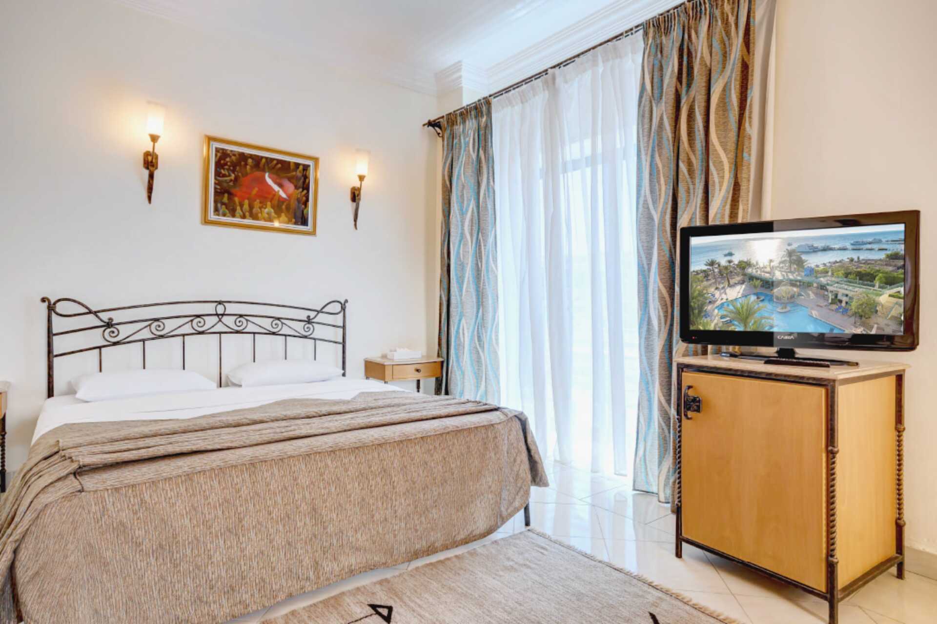 Superior-huone, jossa on parveke tai terassi ja merinäköala. All Inclusive sisältyy hintaan. Parivuode tai kaksi yhden hengen sänkyä. Mahdollisuus lisävuoteisiin kokoontaitettavissa vuoteissa, vuodesohvalla tai yhden hengen vuoteissa. Maksuton ilmastointi. Tallelokero ja wifi lisämaksulla. Minibaari - pieni vesipullo maksutta - täytetään päivittäin, muut juomat ja välipalat lisämaksusta. Vedenkeitin, kahvia ja teetä. Tv kansainvälisillä kanavilla. Hiustenkuivain. Kylpyamme tai suihku ja wc. Siivous 7 krt/viikko.