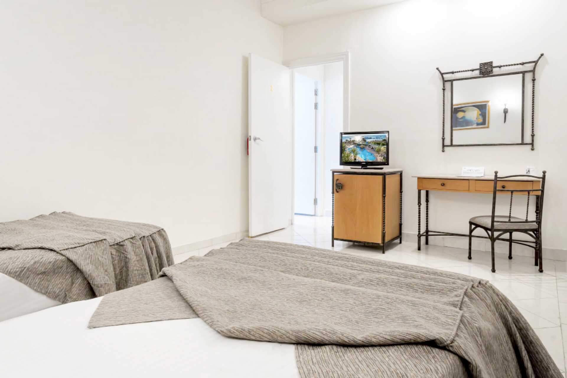 Perhehuone parvekkeella tai terassilla. Perhehuoneessa on kaksi makuuhuonetta. Yksi makuuhuone, jossa parivuode tai kaksi erillistä vuodetta. Lisävuodemahdollisuus yhden hengen sänkyyn ja vuodesohva tai kaksi erillistä sänkyä toisessa makuuhuoneessa. Maksuton ilmastointi. Tallelokero ja wifi lisämaksulla. Minibaari lisämaksulla. Vedenkeitin, kahvia ja teetä. Tv kansainvälisillä kanavilla. Hiustenkuivain. Kylpyamme tai suihku ja wc. Siivous 7 krt/viikko.