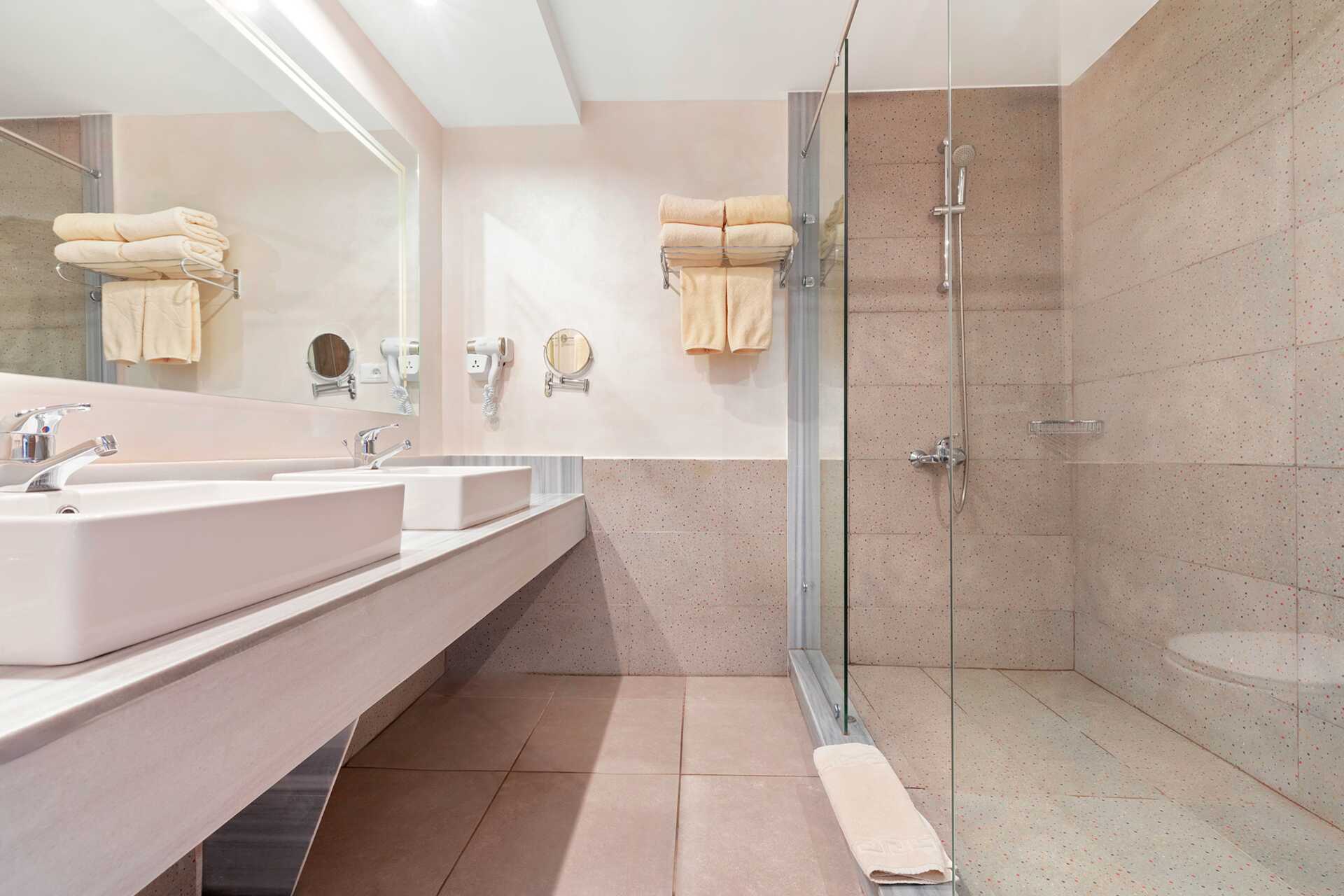Kahden hengen huone, jossa parveke tai terassi ja allasnäköala. Parivuode tai kaksi yhden hengen sänkyä. Lisävuodemahdollisuus taitettavaan sänkyyn. Maksuton wifi, ilmastointi ja tallelokero. Jääkaappi ja alkoholiton juoma saavuttaessa. Vedenkeitin, kahvia ja teetä. Tv kansainvälisillä kanavilla. Hiustenkuivain. Suihku ja wc. Siivous 7 krt/viikko.