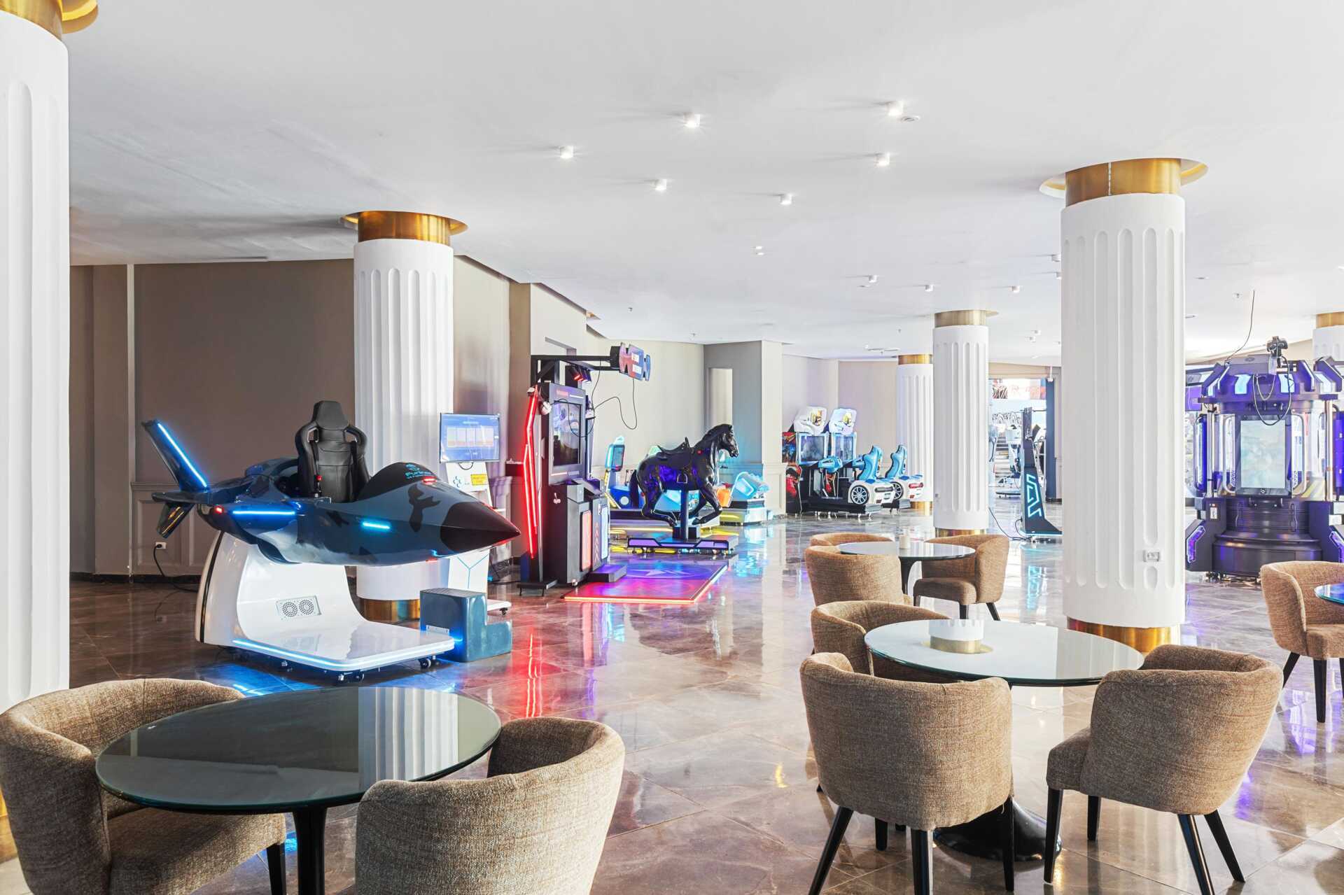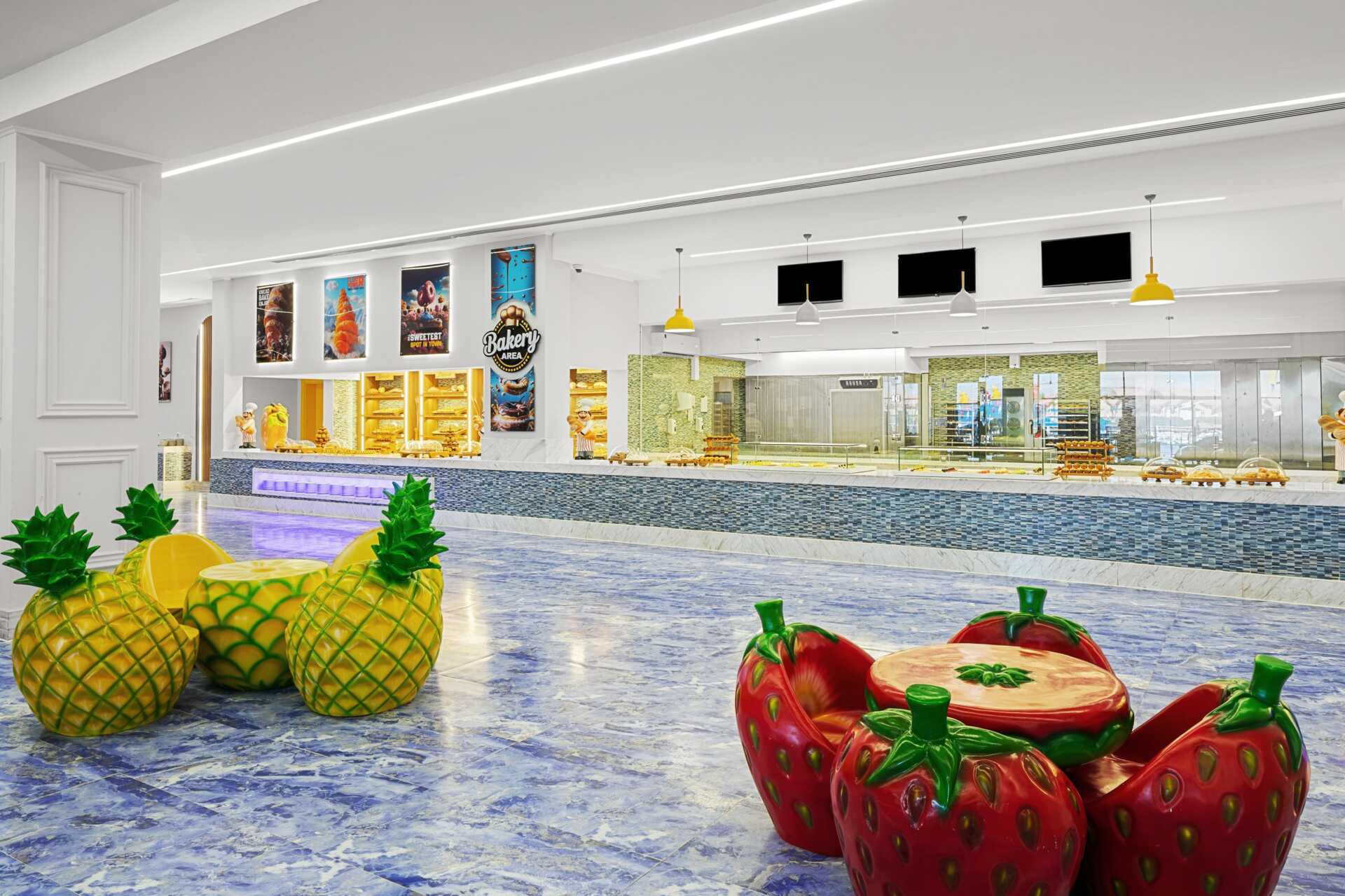 Alueella monia erilaisia ravintoloita, kaikkea kansainvälisistä buffetista, pikaruoasta ja saksalaisesta ravintolasta italialais- ja aasialaisiin ravintoloihin. Alueella on useita baareja, joista aulabaari on avoinna 24 tuntia vuorokaudessa.