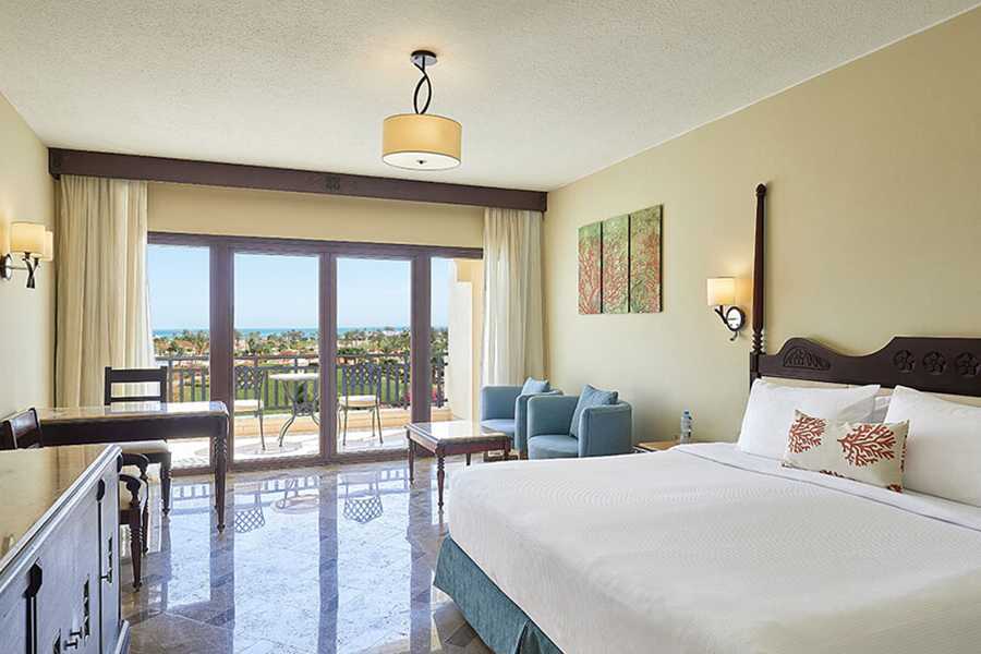 Deluxe-sviitti, jossa on parveke ja näköala golfkentälle ja rajoitettu merinäköala. Parivuode tai kaksi erillistä sänkyä. Lisähuonemahdollisuus kokoontaitettavassa sängyssä. Maksuton nopea wifi 2-3 laitteelle per huone, ilmastointi ja tallelokero. Kattotuuletin. Maksuton minibaari, ja se täytetään päivittäin paikallisilla juomilla. Vedenkeitin, kahvia ja teetä. Tv kansainvälisillä kanavilla. Kylpytakit ja tossut. Hiustenkuivain. Kylpyhuoneessa amme, erillinen suihku ja wc. Siivous 7 krt/viikko. Alle 2-vuotiaat lapset lasketaan lisävuoteella majoittuviksi henkilöiksi.