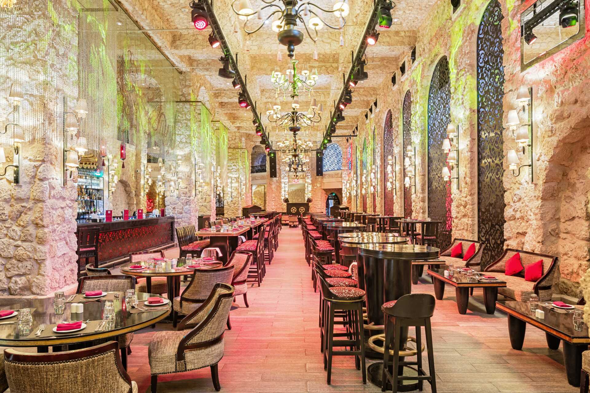 Hotellissa on laaja valikoima ravintoloita erilaisilla keittiöillä ja tunnelmalla, kuten buffetravintola L'Asiatique, jossa tarjoillaan intialaisen, kiinalaisen ja thaimaalaisen keittiön ruokia, sekä Buddha Buddha -ravintola, jossa tarjoillaan hyvää sushia. Siisti pukeutuminen - miehillä pitkät housut illallisilla. Löydät myös useita luonteeltaan erilaisia baareja. Jälkiruokaa tarjoilee sekä kahvilat että jäätelöbaarit.