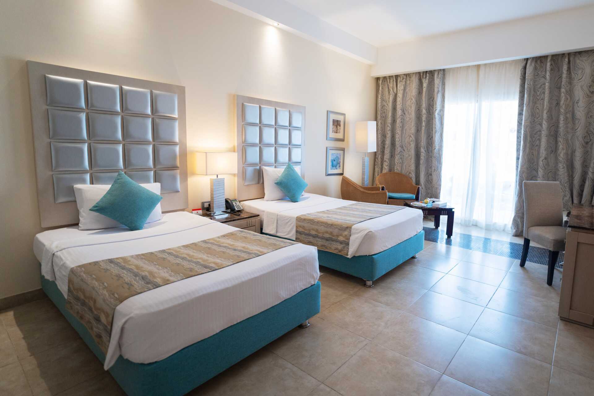 Superior-huone parvekkeella ja merinäköalalla. Parivuode tai kaksi yhden hengen sänkyä. Mahdollisuus lisävuoteeseen kokoontaitettavasta vuoteesta. Maksuton wifi, ilmastointi ja tallelokero. Vedenkeitin, kahvia ja teetä. Suuri vesipullo per henkilö/päivä sisältyy hintaan. Tv kansainvälisillä kanavilla. Hiustenkuivain. Kylpyhuoneessa kylpyamme, erillinen suihku ja wc. Siivous 7 krt/viikko. Alle 2-vuotiaat lapset lasketaan lisävuoteella majoittuviksi henkilöiksi.