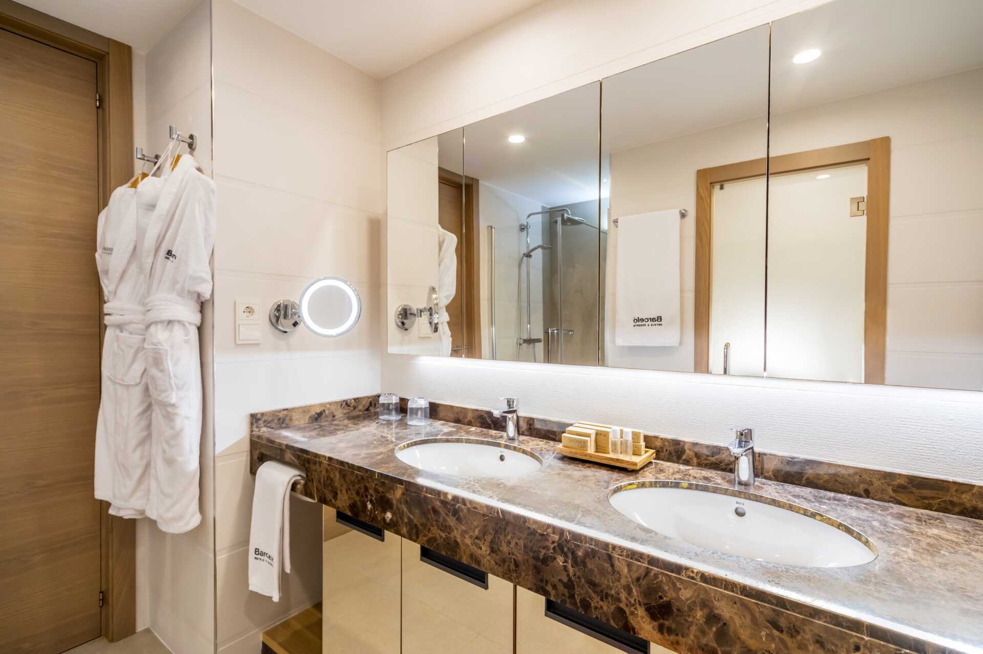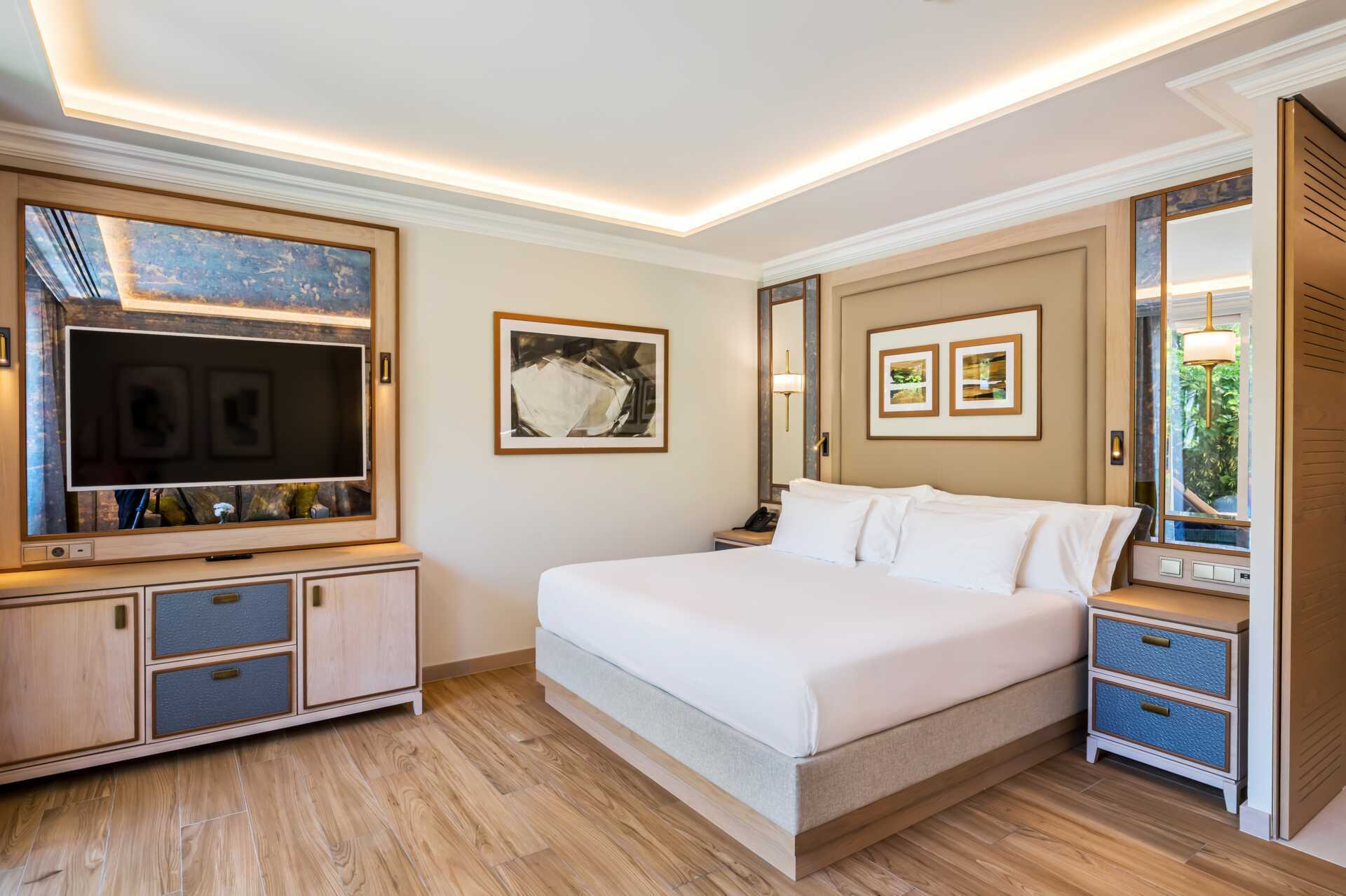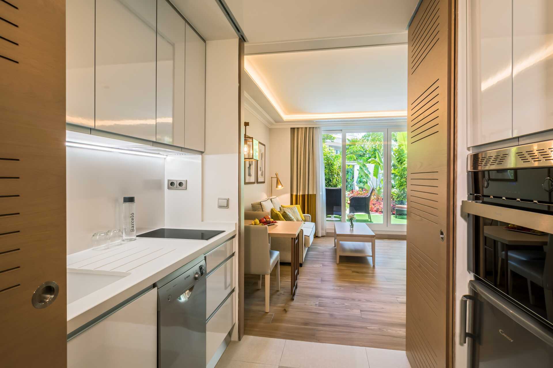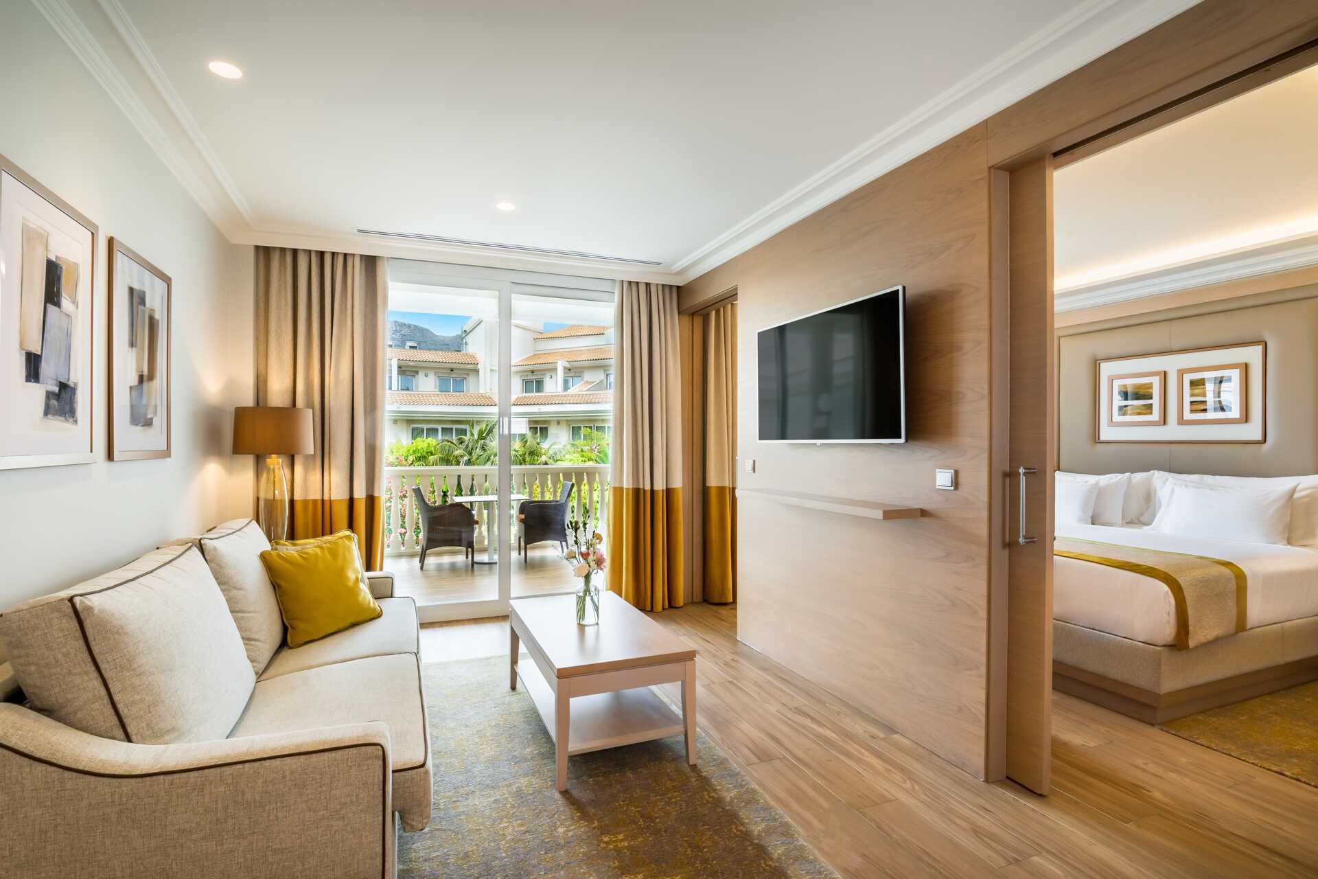 Deluxe Plus-huone, jossa parveke tai terassi. Parivuode. Lisävuodemahdollisuus vuodesohvalla. Siellä on myös erillinen keittiö, jossa on keittolevyt, jääkaappi, astianpesukone, uuni ja mikroaaltouuni. Keittiövarusteet pyynnöstä. Maksuton wifi ja ilmastointi. Tallelokero lisämaksusta. Tv kansainvälisillä kanavilla. Hiustenkuivain. Kylpyhuoneessa suihku ja wc. Siivous 5 krt/viikko.