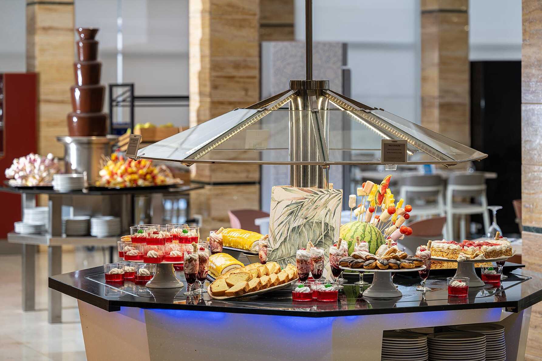 Hotellissa on buffetravintola, jossa tarjoillaan Välimeren keittiön herkkuja. Baari.