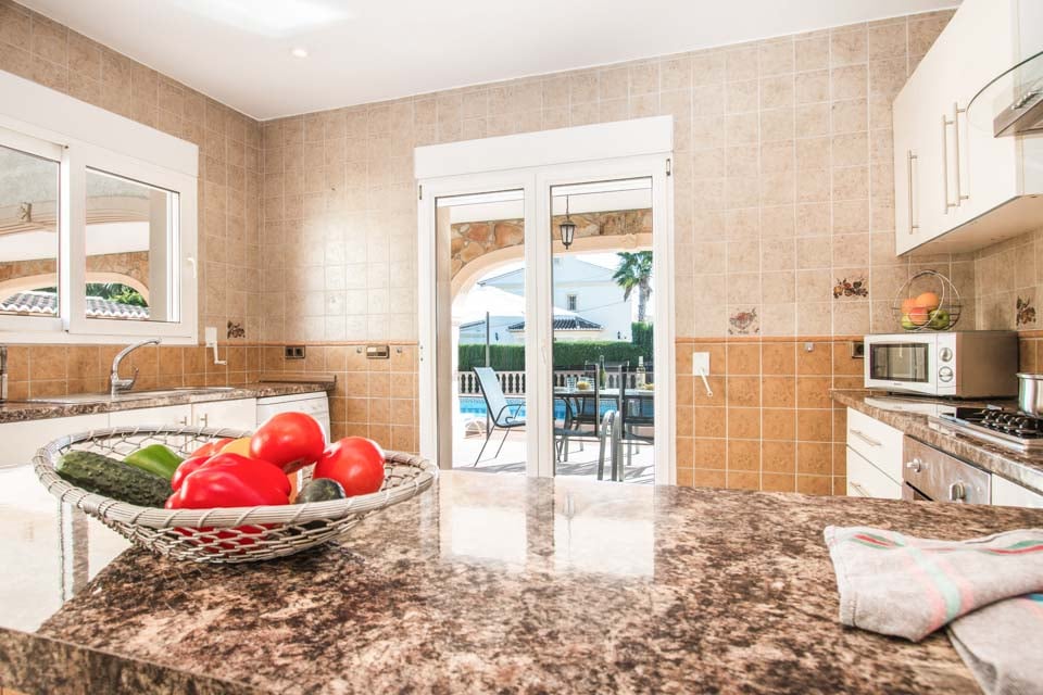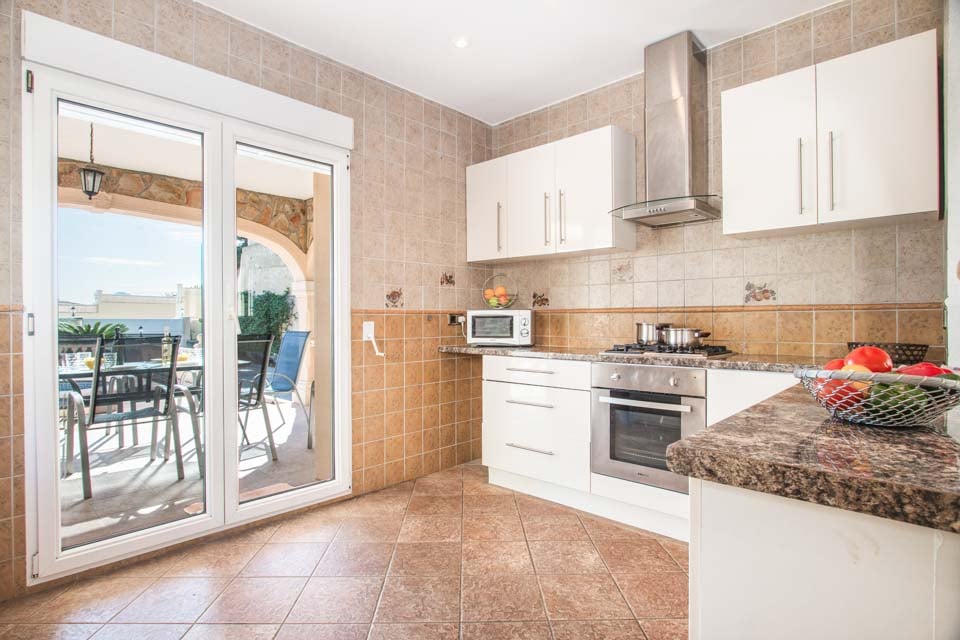 Sisällä huvilassa on täysin varusteltu keittiö, joka sopii erinomaisesti aterioiden valmistukseen, sekä ulkona oleva pesukone lisämukavuutta varten. Avoimissa oleskelutiloissa on kauniit terrakottalaatat, jotka lisäävät huvilaan ripauksen Välimeren viehätystä. Ulkona oleva grillialue sopii erinomaisesti ulkoilmaruokailuun, joten voit nauttia aterioita samalla kun ihailet upeaa ympäristöä.
