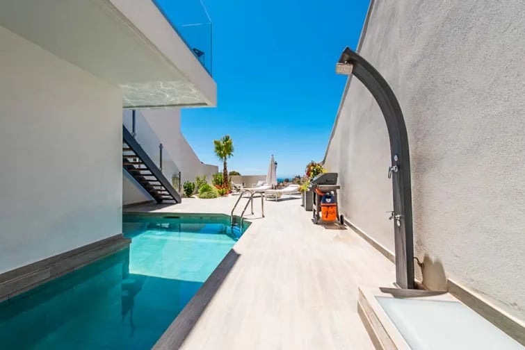 Useassa kerroksessa sijaitseva upouusi huvila majoittaa jopa kuusi vierasta kolmessa makuuhuoneessa. Tyylikäs avokeittiö ja ruokailutila merinäköalalla luovat varmasti kodikkaan tunnelman, kun taas erillinen viihtyisä olohuone on loistava paikka rentoutumiseen. Ulkoalueella on oma uima-allas ja runsaasti paikkoja rentoutumiseen auringossa. Kävellessäsi kiinteistön läpi arvostat varmasti sen ylellistä ja miellyttävää tunnelmaa.