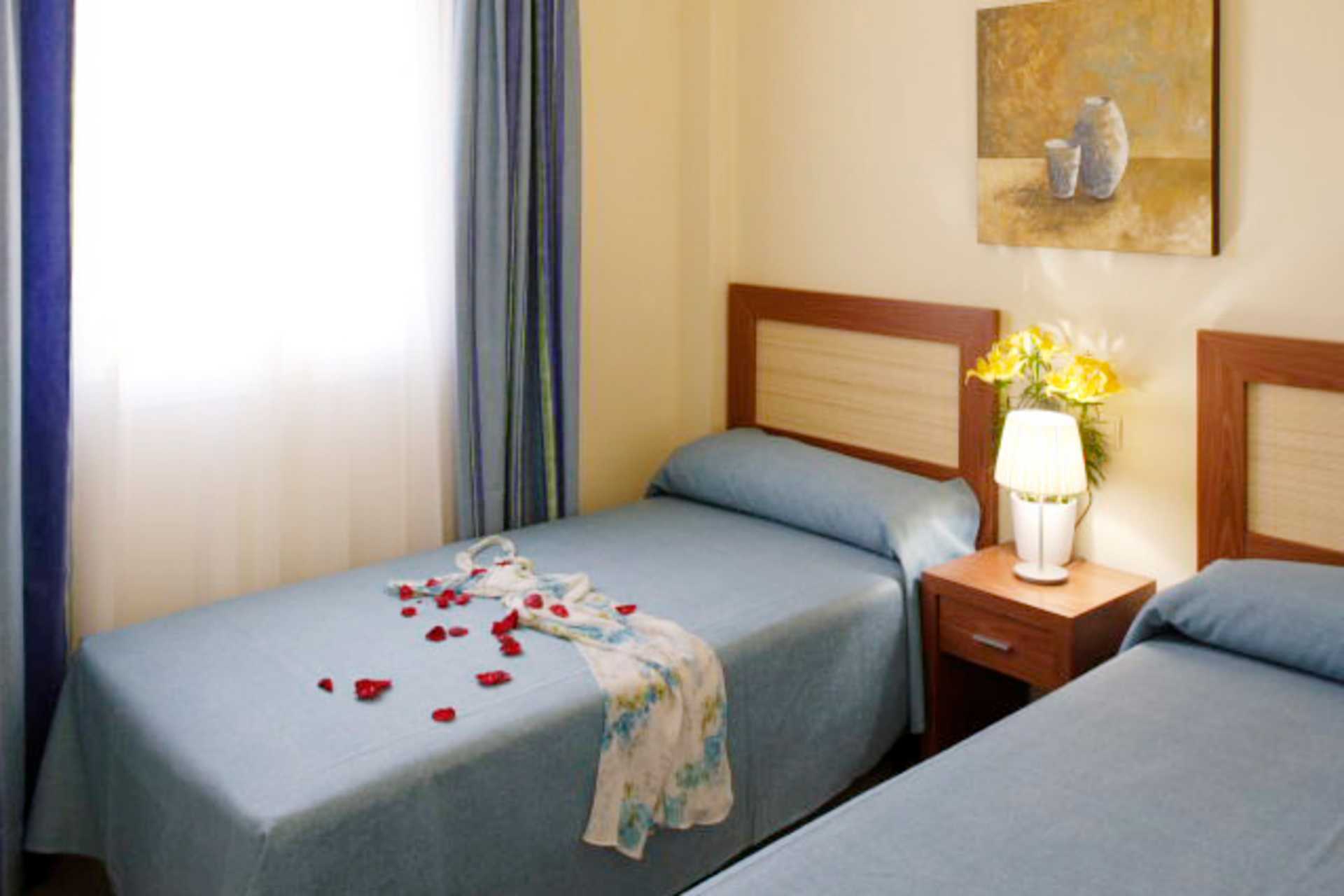 Kaksio parvekkeella tai terassilla. Makuuhuone sekä yhdistetty olohuone ja minikeittiö. Kaksi yhden hengen sänkyä tai yksi parivuode. Lisävuodemahdollisuus vuodesohvasta. Minikeittiö, jossa jääkaappi pakastelokerolla, keittolevyt, mikroaaltouuni, vedenkeitin, kahvinkeitin, leivänpaahdin ja yksinkertainen keittiövarustus. Maksuton wifi ja ilmastointi. Tallelokero lisämaksusta. Tv kansainvälisillä kanavilla. Silitysrauta ja -lauta. Pesukone. Hiustenkuivain. Kylpyamme suihkulla ja wc. Siivous 7 krt/viikko.