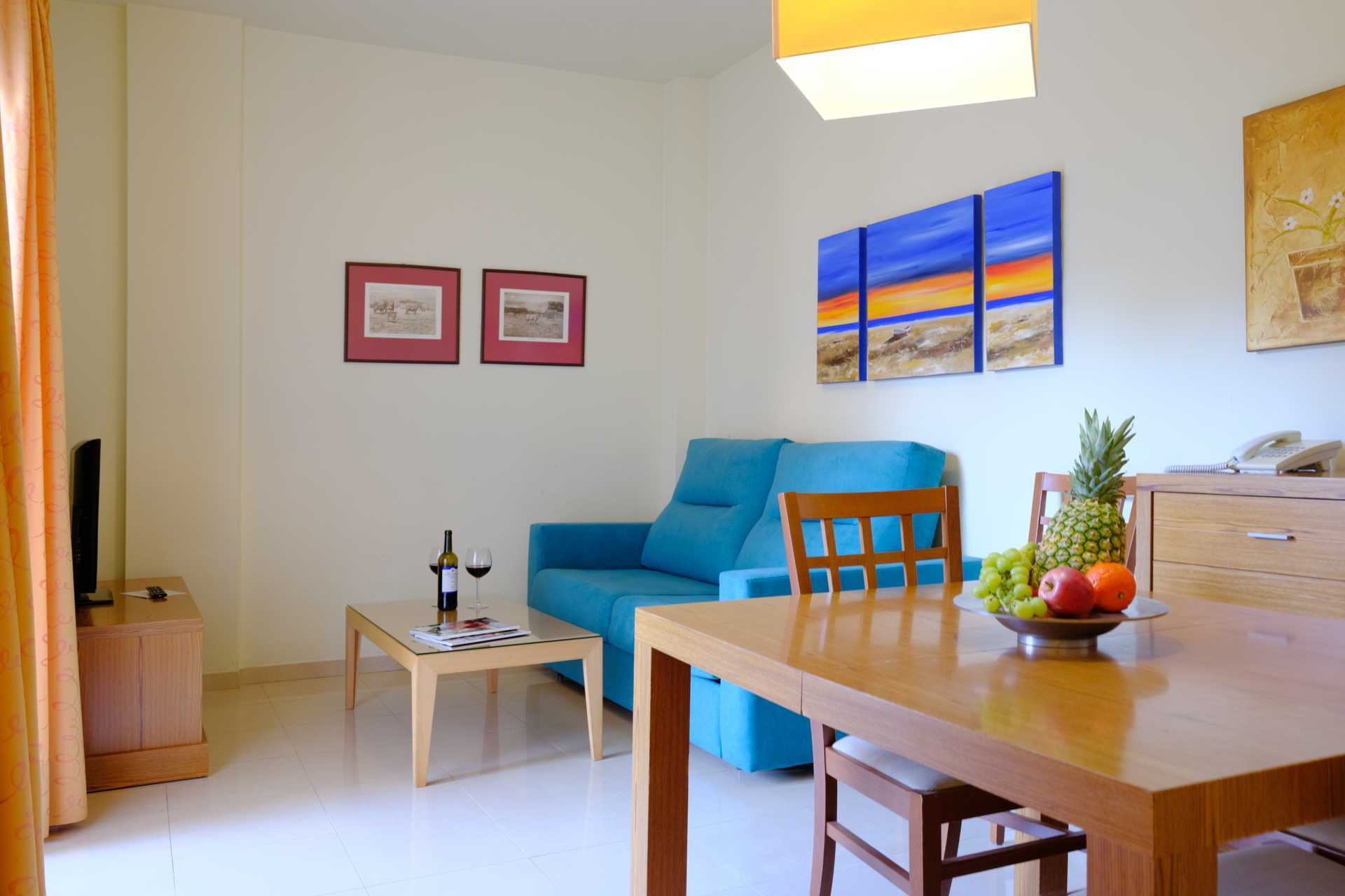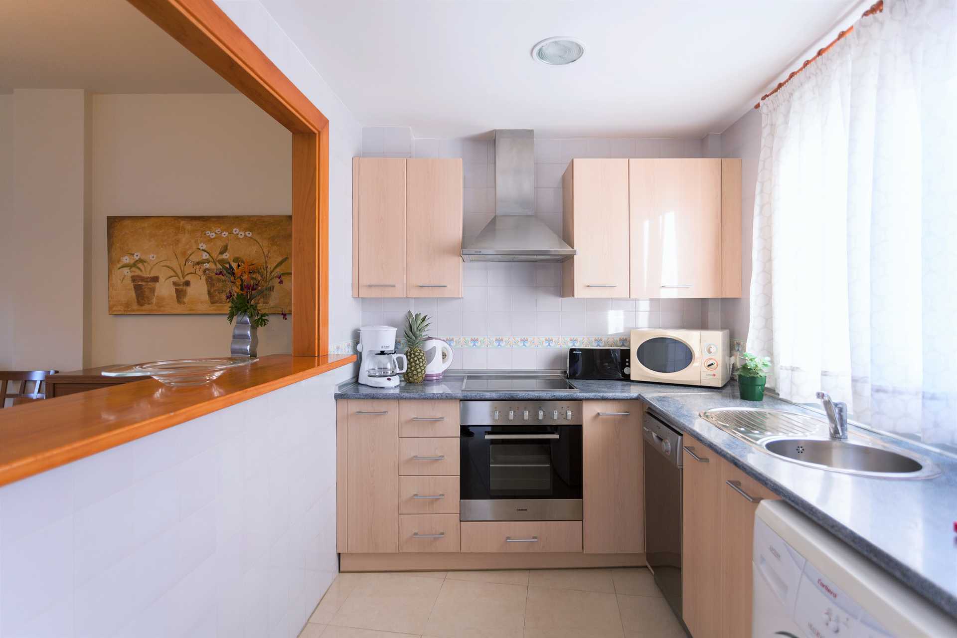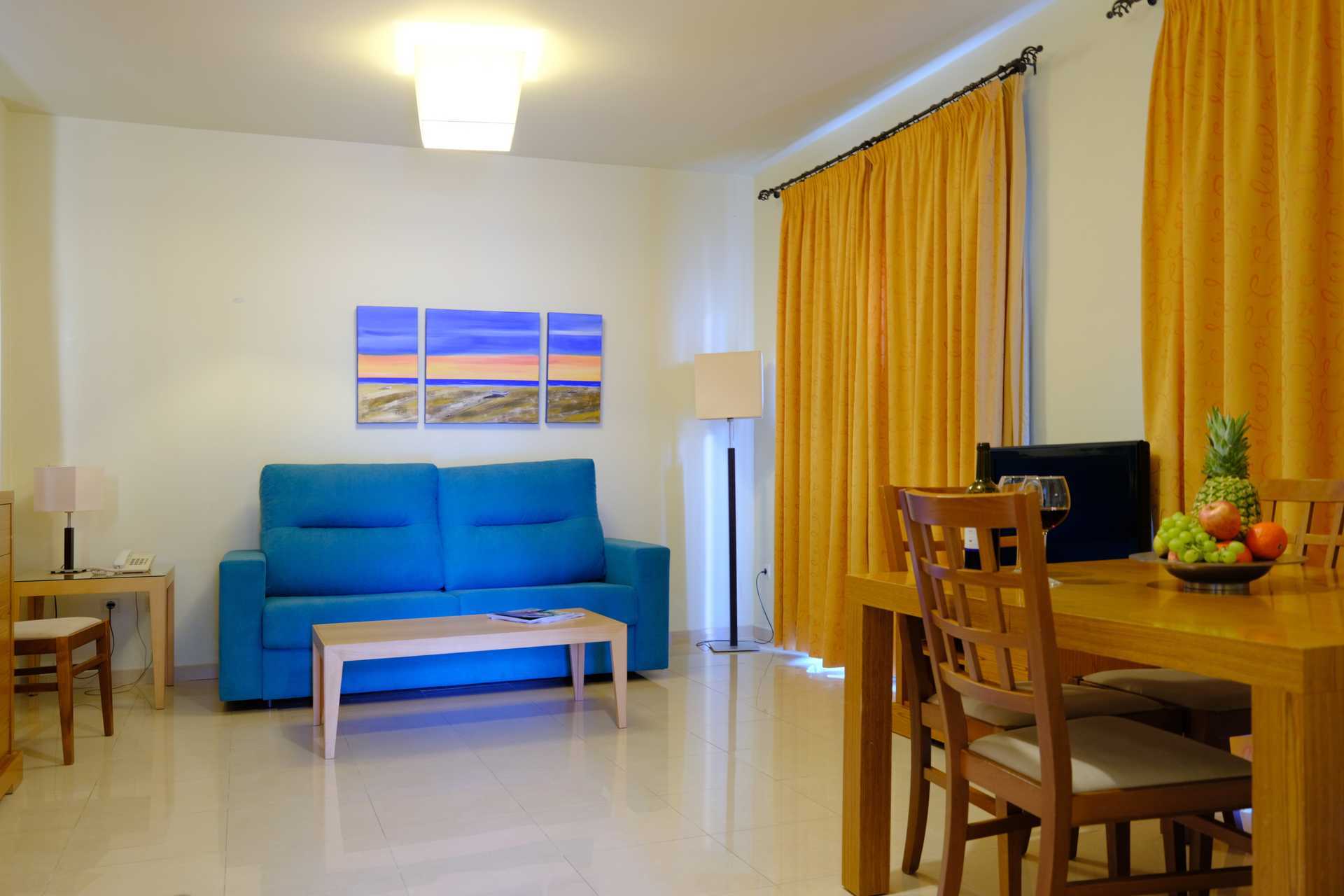Kolmio parvekkeella tai terassilla. Kaksi makuuhuonetta sekä yhdistetty olohuone ja minikeittiö. Toisessa makuuhuoneessa kaksi erillistä sänkyä ja toisessa parisänky. Lisävuodemahdollisuus vuodesohvasta. Minikeittiö, jossa keittolevyt, jääkaappi, mikroaaltouuni, vedenkeitin, kahvinkeitin, jääkaappipakastin, astianpesukone ja peruskeittiövälineet. Maksuton wifi ja ilmastointi. Tallelokero lisämaksusta. Tv kansainvälisillä kanavilla. Silitysrauta ja -lauta. Pesukone. Hiustenkuivain. Kylpyamme suihkulla ja wc:llä. Siivous 7 krt/viikko.