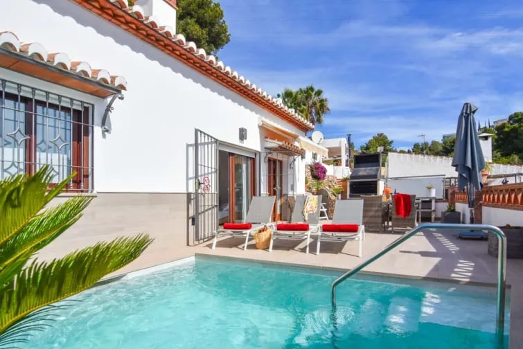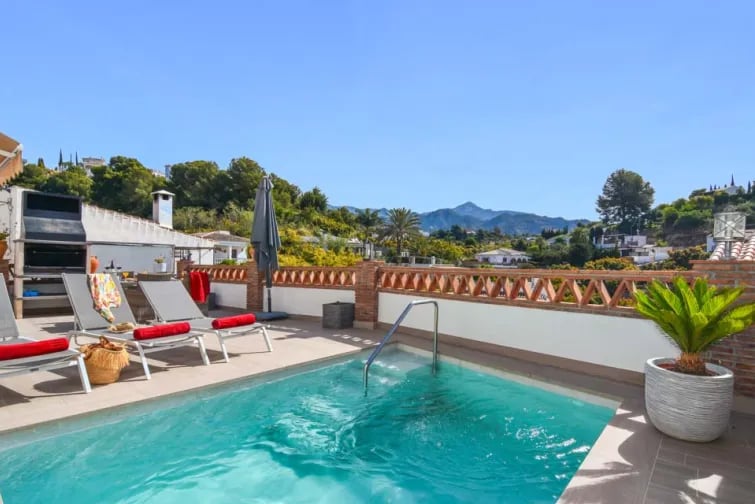 Ulkona sinua odottaa huvilan oma uima-allas, jota ympäröivät neljä kutsuvaa aurinkotuolia, joilla voit nauttia Välimeren auringosta rauhassa ja hiljaisuudessa. Ulkona ruokailu on nautinnollista tiilestä rakennetulla grillillä, joka sopii täydellisesti herkullisten aterioiden nauttimiseen andalusialaisen taivaan alla.