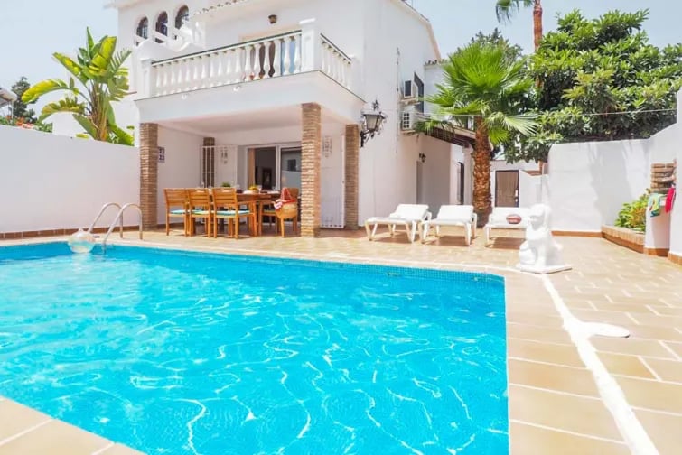 Villa Leones Nerjassa on neljä makuuhuonetta, suuri terassialue grillillä, oma uima-allas, aurinkotuoleja auringosta nauttimiseen ja yhdelle autopaikalle pihatiellä. Pohjakerroksessa on täysin varusteltu keittiö, olohuone ja ruokailutila, joista on käynti katetulle terassille, joka on ihanteellinen paikka ruokailla ulkona samalla kun ihailee terassia ja uima-allasaluetta. Pohjakerroksessa on myös kahden hengen makuuhuone, jossa on oma kylpyhuone. Yläkerrassa, ensimmäisessä kerroksessa, on kolme makuuhuonetta: yksi kahden hengen huone, jossa on suuri etelään päin oleva parveke ja oma kylpyhuone hierovalla kylpyammeella, sekä kaksi kahden hengen huonetta erillisillä vuoteilla ja lisäksi suuri perheille tarkoitettu kylpyhuone.
