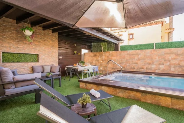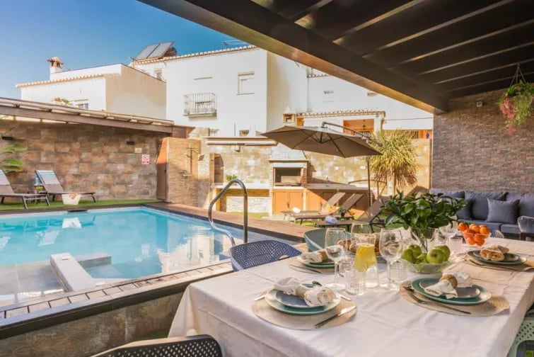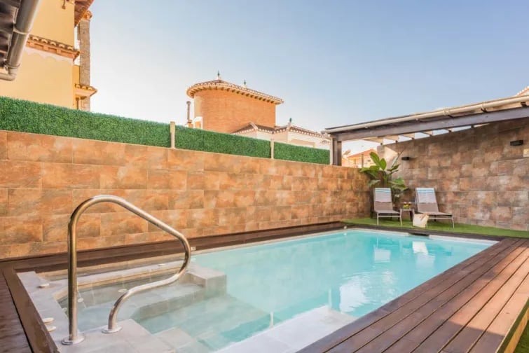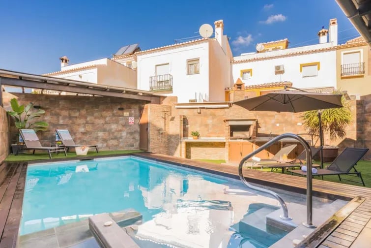 Ja tässä huvilassa on kaikki aurinkoisessa kodissa odottamasi ominaisuudet, mukaan lukien kutsuva ulkouima-allas, joka on ihanteellinen uimiseen, kellumiseen ja polskutteluun auringon paahtaessa. Ulkona on myös grillausmahdollisuus ulkoilmaruokailuun, mukava ulkoterassi ja mukavat aurinkotuolit, jotka on täydellisesti varustettu "leipomiseen ja pyörimiseen".