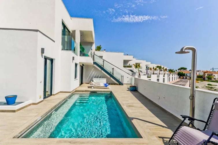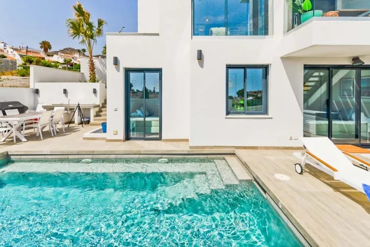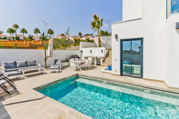Villa Royal Palm 36 sijaitsee 15 minuutin kävelymatkan päässä vilkkaalta Nerjan rannalta. Se on upea uudisrakennus, jossa on moderni sisustus. Tässä kolmikerroksisessa huvilassa on tilavat ja kauniisti sisustetut huoneet kaikkialla, ja sisäänkäynti sijaitsee ylimmässä kerroksessa. Täältä löydät upean avoimen oleskelu- ja ruokailutilan, jossa on korkeatasoiset mukavuudet ja portaat suoraan alas uima-altaalle. Viehättävät kodin yksityiskohdat yhdistettynä raikkaisiin, viileisiin valkoisiin seiniin luovat tyylikkään tunnelman, joka sopii täydellisesti rentoutumiseen pitkän päivän jälkeen.