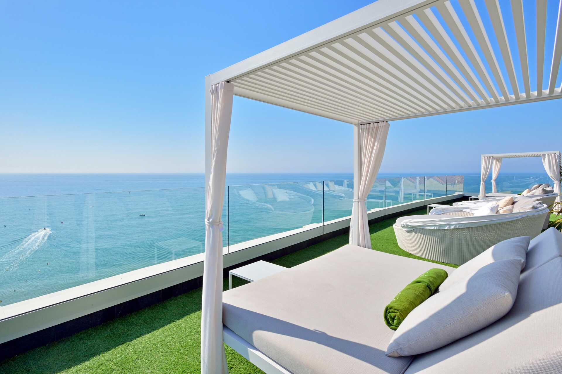 Hotellin Sky & Sea Rooftop Pool and Terracelta on upeat näkymät merelle ja rannikolle. Molemmilla kattoterasseilla on uima-allas, joista toisen ikäraja on 16 ja toinen on Level-vieraille. Aurinkotuoleja ja -varjoja, balilaisia sänkyjä sekä baari, jossa tarjoillaan kevyitä ruokia ja juomia. Hotellissa on myös suurempi allasalue aurinkotuoleineen ja -varjoineen sekä sisäuima-allas suolavedellä hotellin spassa. Pitkä, leveä ja ihana hiekkaranta odottaa suoraan kadun toisella puolella. Hotellilla on oma Beach Club, jossa voit nauttia juomista, aurinkotuoleista ja balilaisista aurinkosängyistä. Allas- ja rantapyyhkeet panttia vastaan.