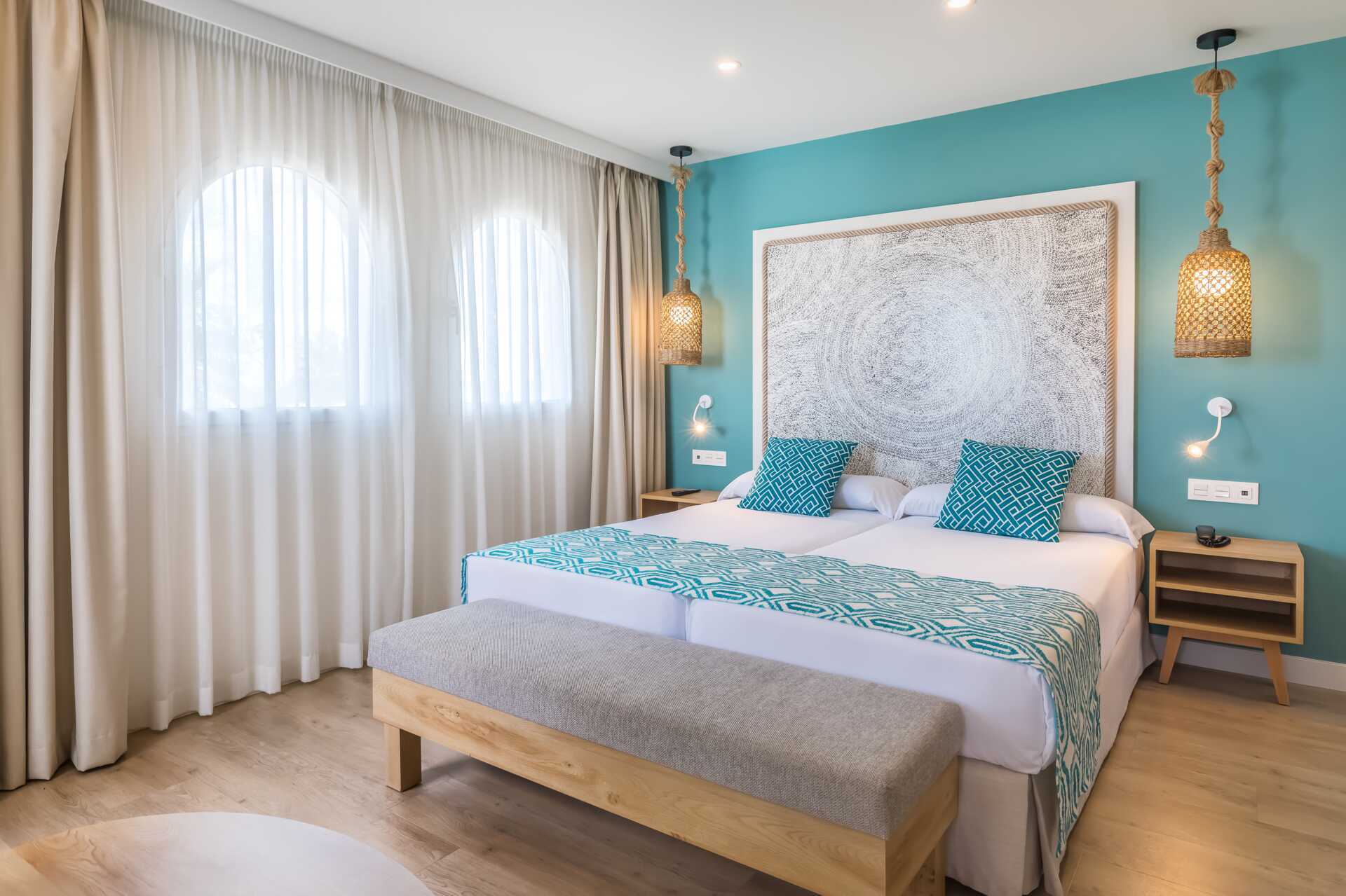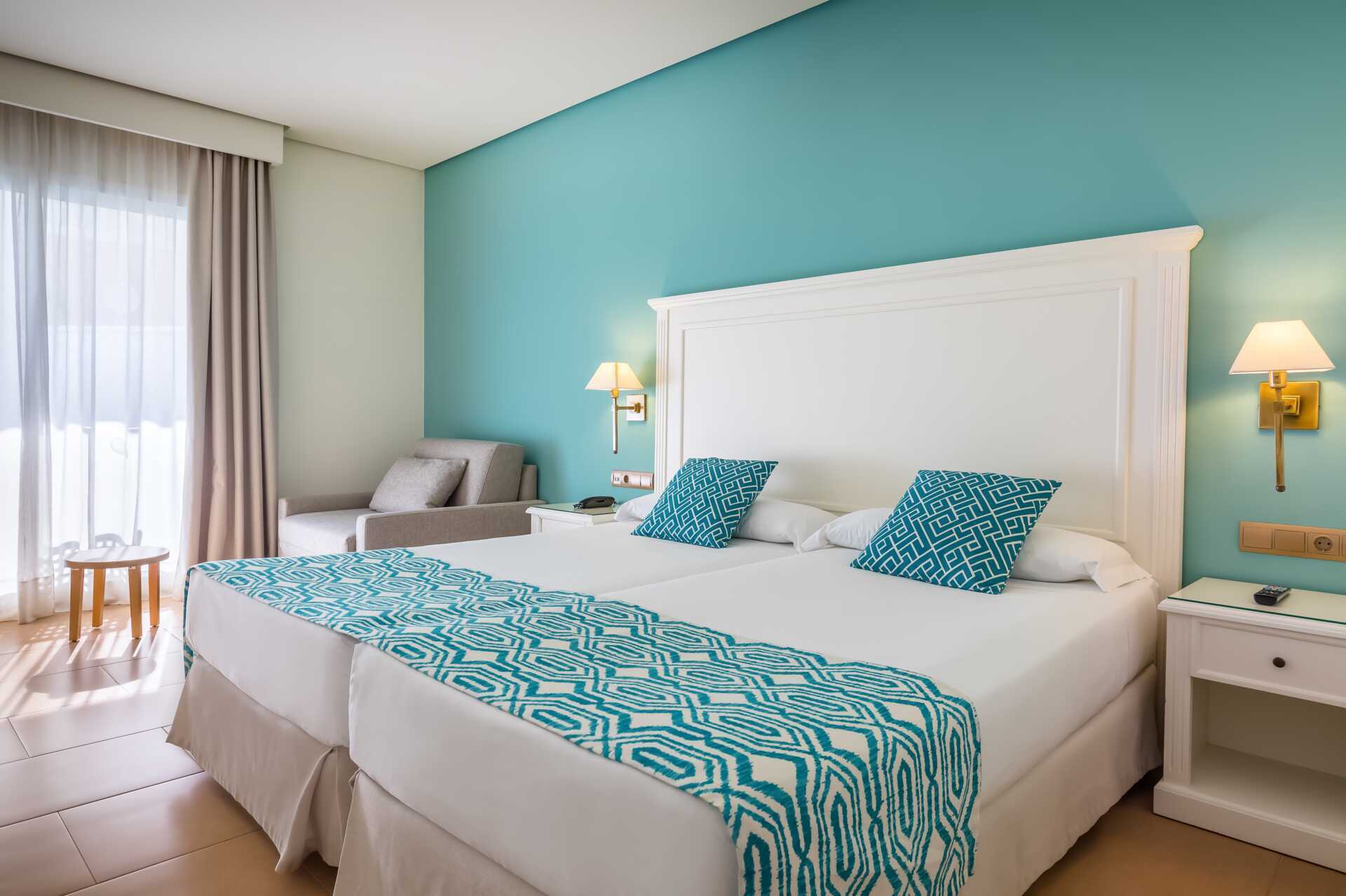 Kahden hengen huoneita, joissa on parveke, osassa rajoitettu merinäköala. Yksi parivuode tai kaksi erillistä vuodetta. Maksuton wifi ja ilmastointi. Tallelokero lisämaksusta. Minibaari. Tv kansainvälisillä kanavilla. Hiustenkuivain. Kylpyhuoneessa suihku ja wc. Siivous 5 krt/viikko.
