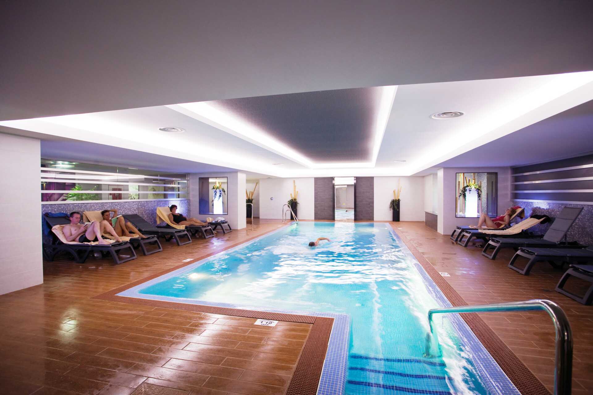 Hotellin wellness-keskuksessa voit nauttia maksutta höyrysaunasta ja treenata kuntosalilla sekä käyttää marraskuusta toukokuuhun lämmitettyä sisäuima-allasta, lisämaksulla kylpylähoitoja ja hierontoja. Iltaviihdettä muutamana iltana viikossa.