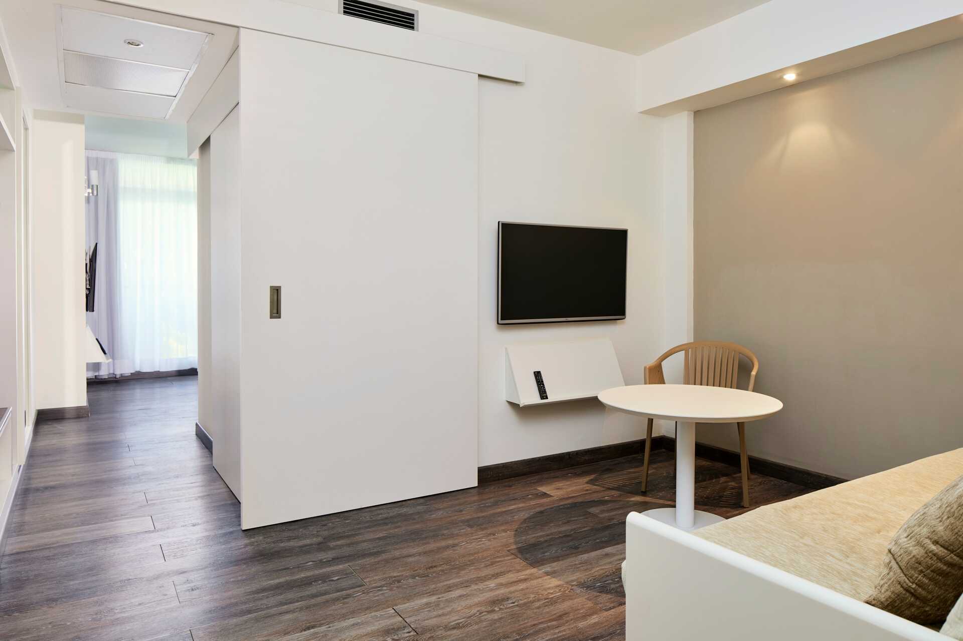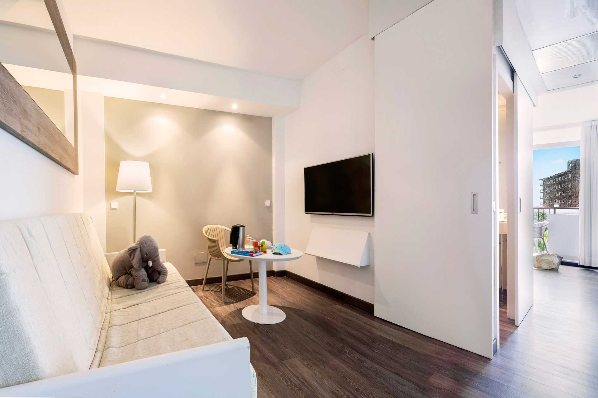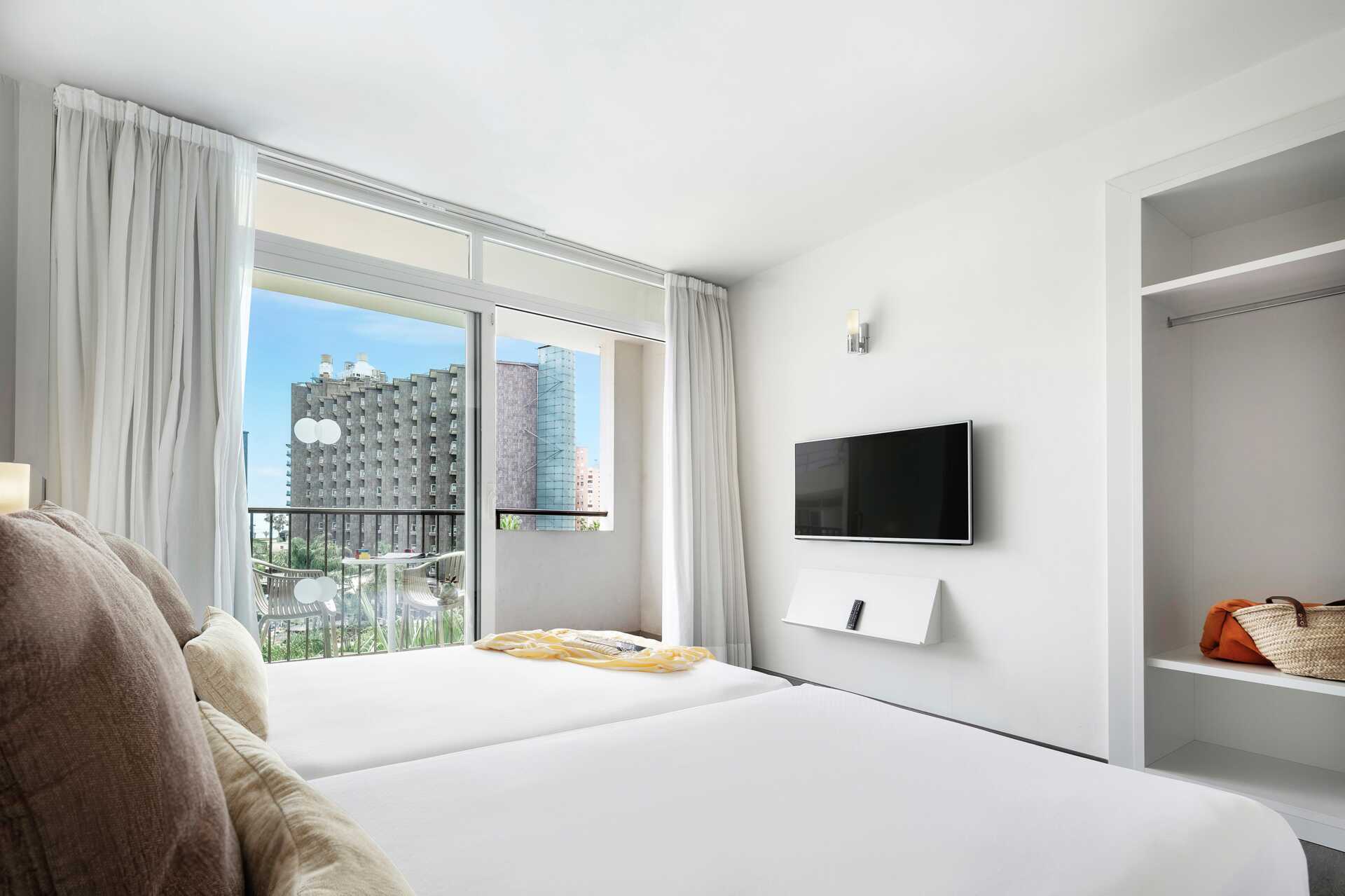 Junior-sviitti parvekkeella ja näkymä uima-altaalle. Parivuode tai kaksi yhden hengen sänkyä. Lisävuodemahdollisuus kokoontaitettavasta vuoteesta. Maksuton wifi ja ilmastointi. Tallelokero lisämaksusta. Jääkaappi. Tv kansainvälisillä kanavilla. Suihku ja wc. Siivous 5 krt/viikko.
