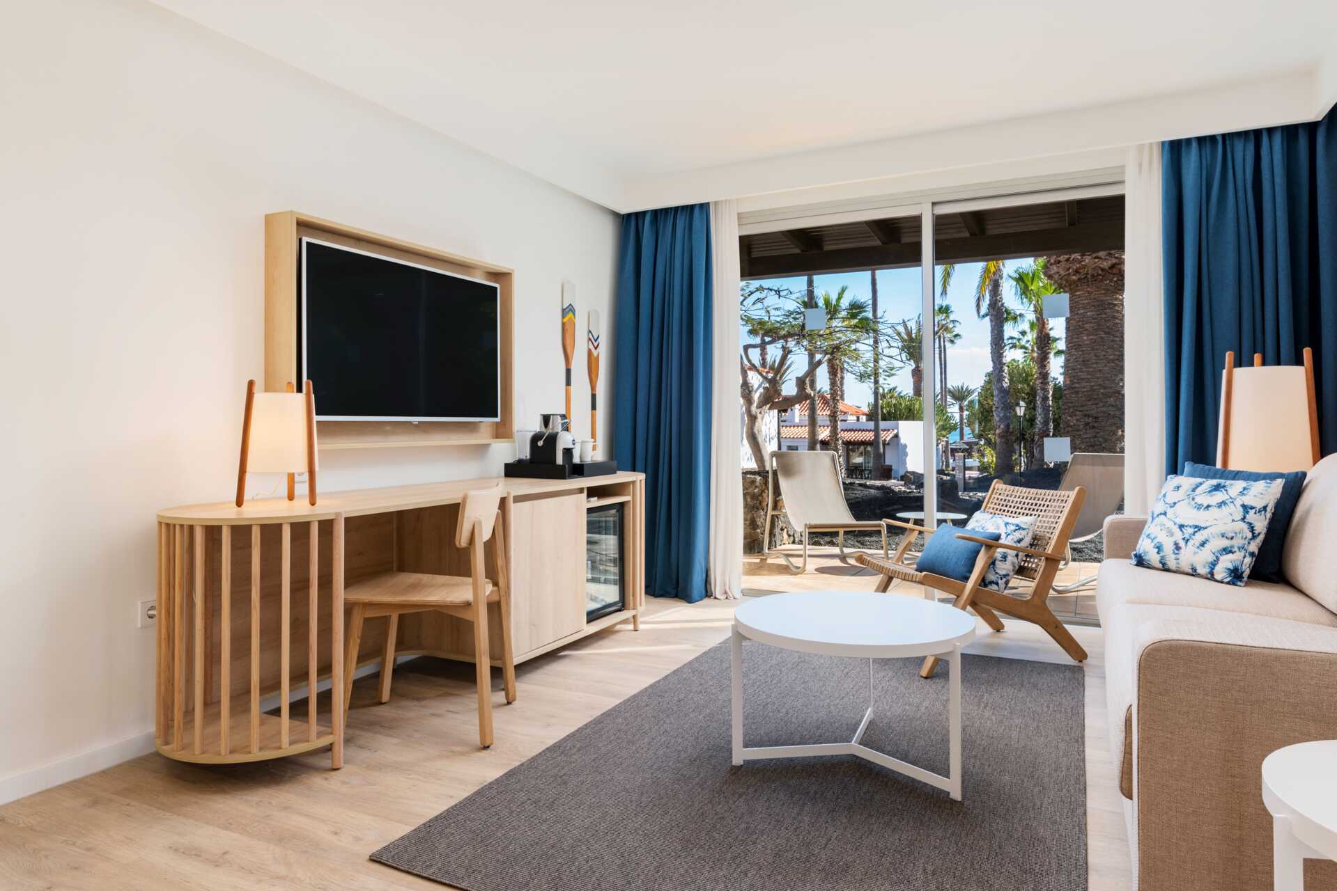 Kahden huoneen sviitti parvekkeella tai terassilla. Olohuone ja makuuhuone. Parivuode. Tyynymenu. Maksuton wifi, ilmastointi ja tallelokero. Vedenkeitin, kahvia ja teetä. Minibaari saapuessa (täyttö lisämaksusta), vesipullot sisältyvät ja täyttö viikon aikana. Tv kansainvälisillä kanavilla. Kylpytakit ja tossut. Hiustenkuivain. Kylpyhuoneessa suihku ja wc. Siivous 7 krt/viikko.